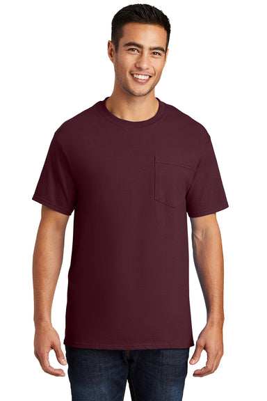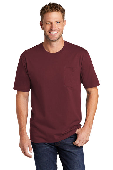 Port & Company Mens Core Short Sleeve Crewneck T-Shirt w/ Pocket - Athletic Maroon