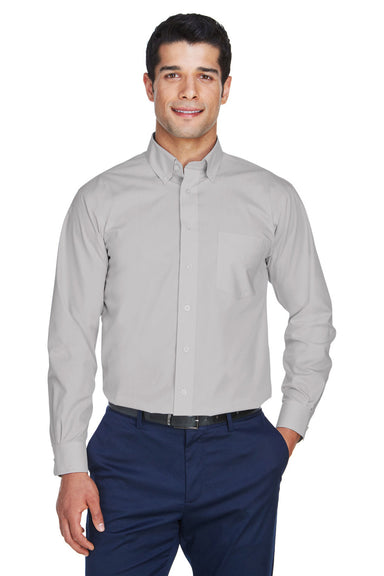 Port Authority Mens Easy Care Wrinkle Resistant Long Sleeve Button Down Shirt w/ Pocket - Steel Grey/Light Stone