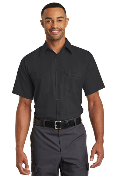 Red Kap Mens Industrial Moisture Wicking Short Sleeve Button Down Shirt w/ Double Pockets - Grey/White
