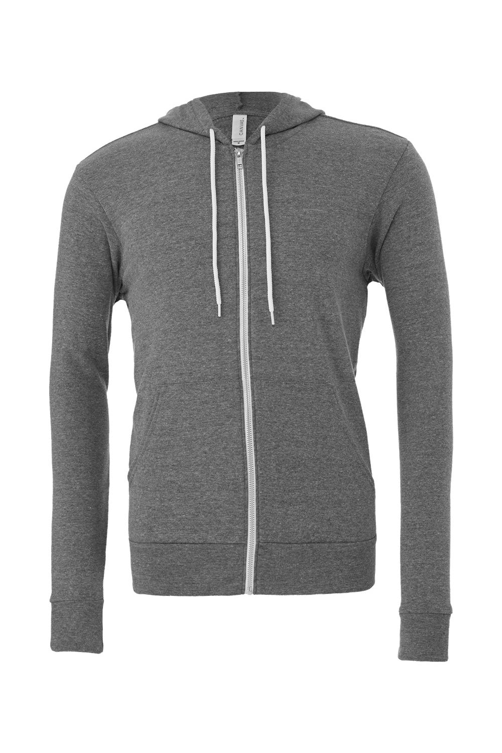 Bella + Canvas Mens Fleece Full Zip Hooded Sweatshirt Hoodie w/ Pockets - Heather Deep Grey