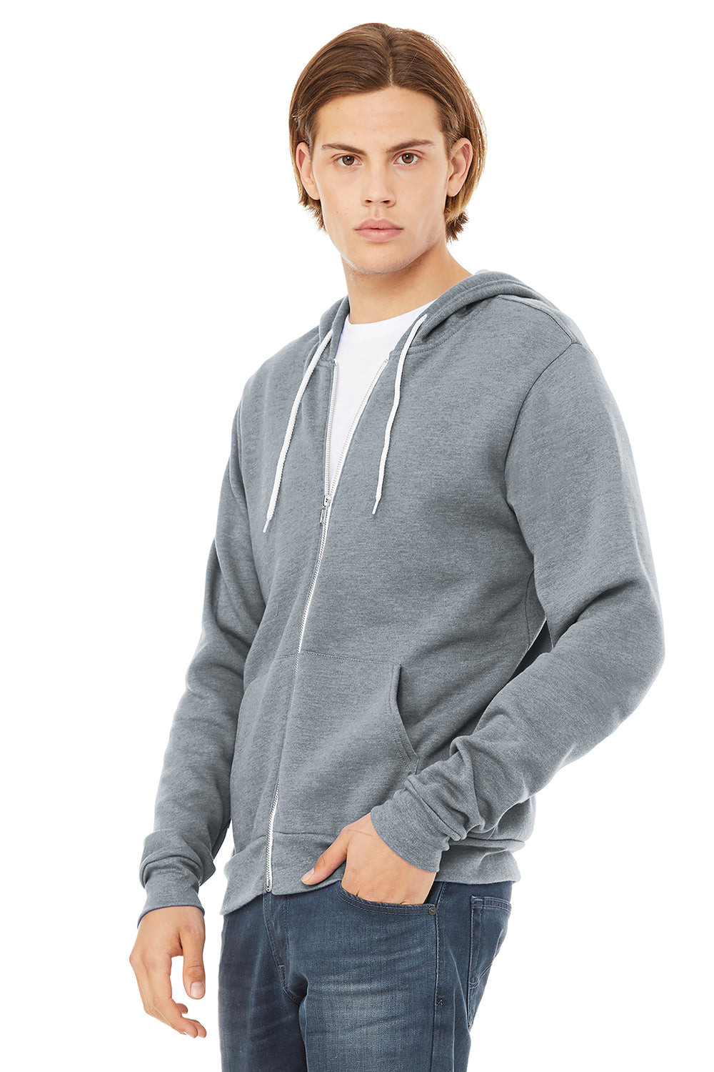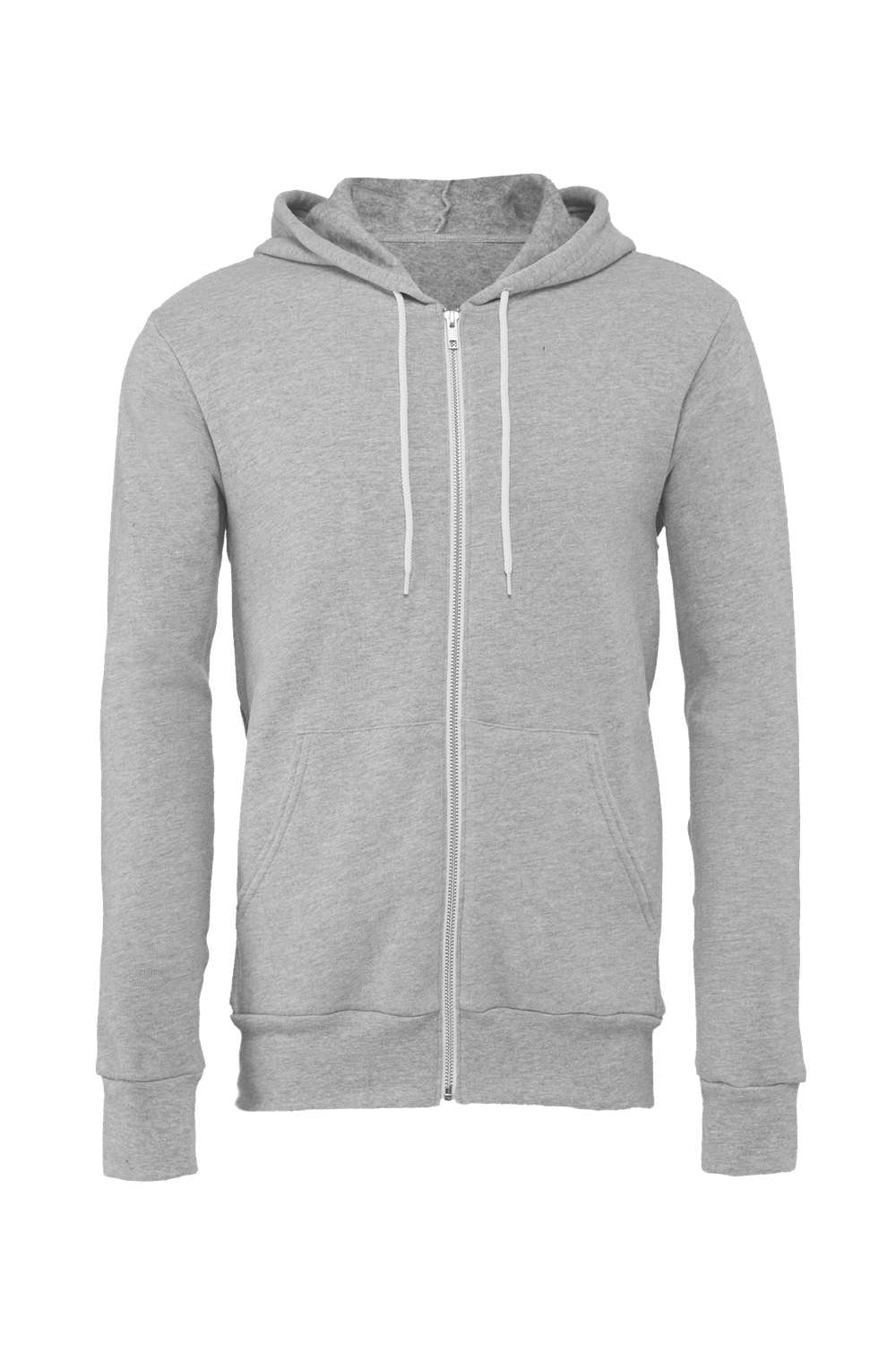 Bella + Canvas Mens Fleece Full Zip Hooded Sweatshirt Hoodie w/ Pockets - Heather Grey