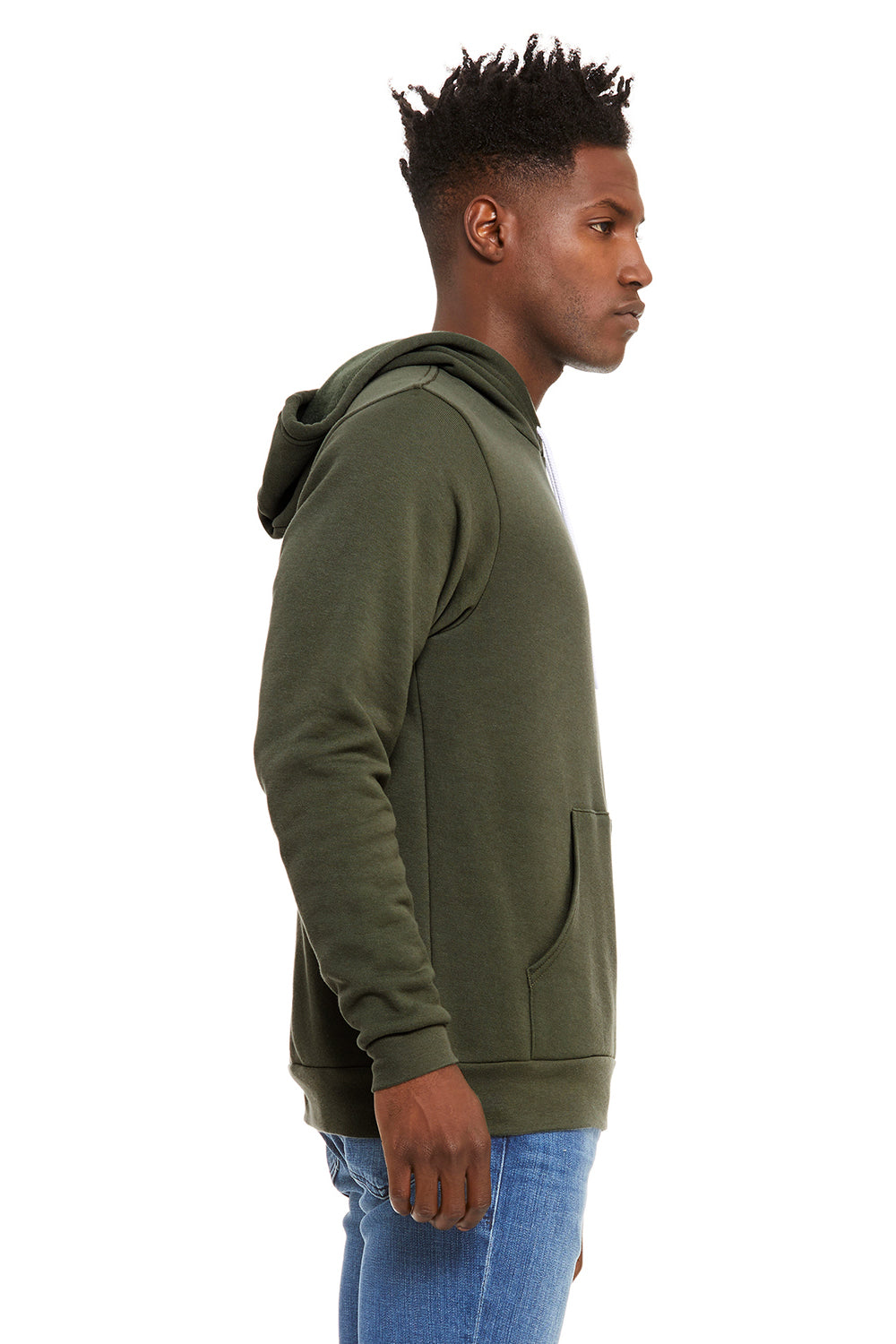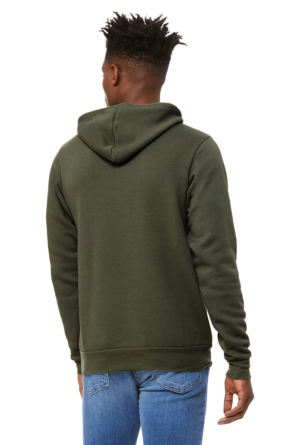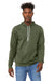 Bella + Canvas Mens Sponge Fleece Hooded Sweatshirt Hoodie w/ Pouch Pocket - Military Green