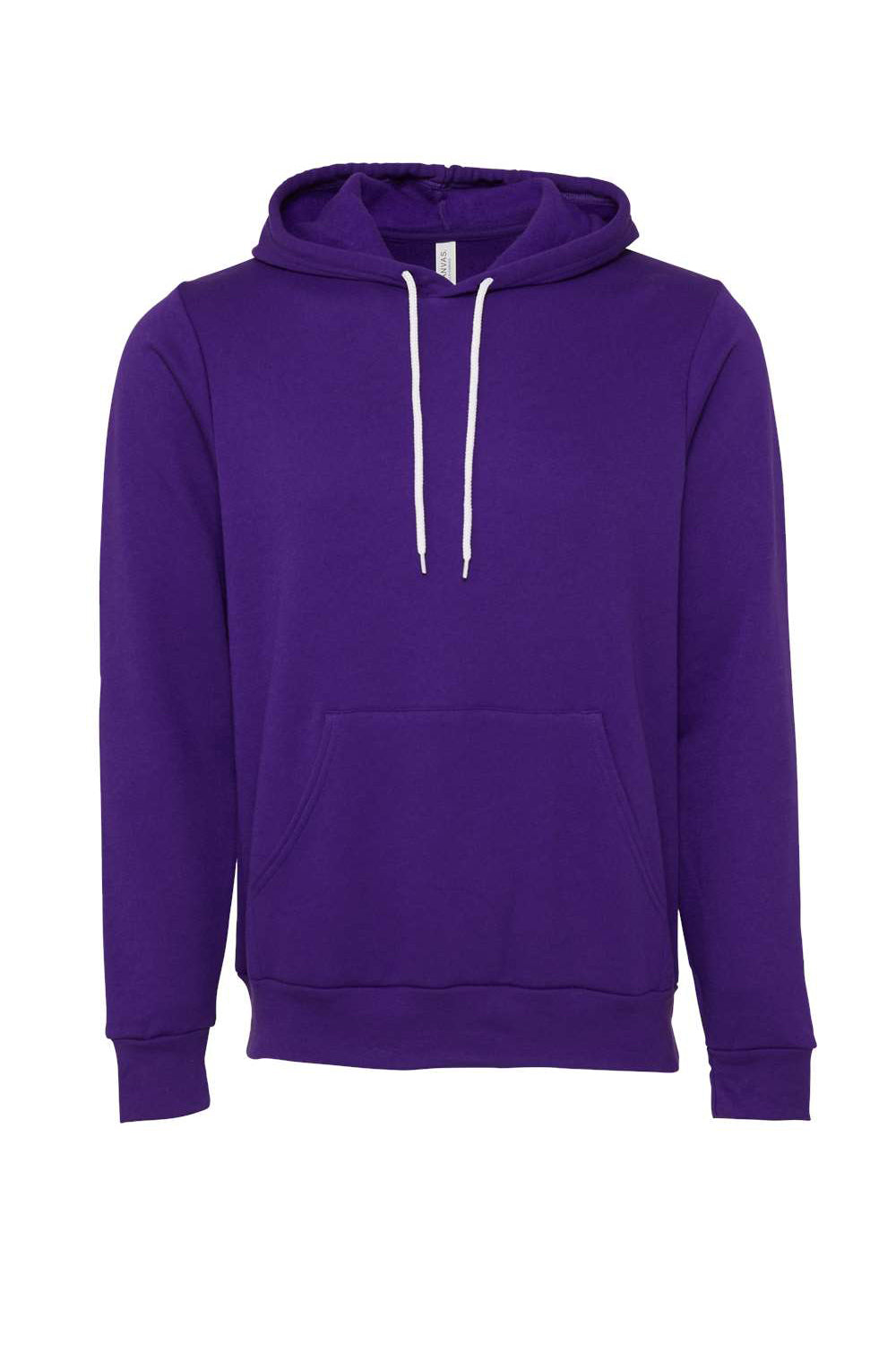 Bella + Canvas Mens Sponge Fleece Hooded Sweatshirt Hoodie w/ Pouch Pocket - Team Purple