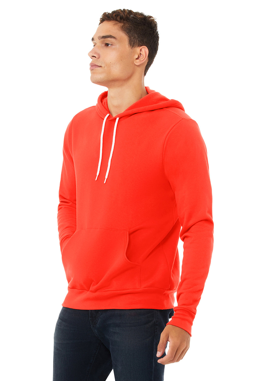 Bella + Canvas Mens Sponge Fleece Hooded Sweatshirt Hoodie w/ Pouch Pocket - Poppy Red
