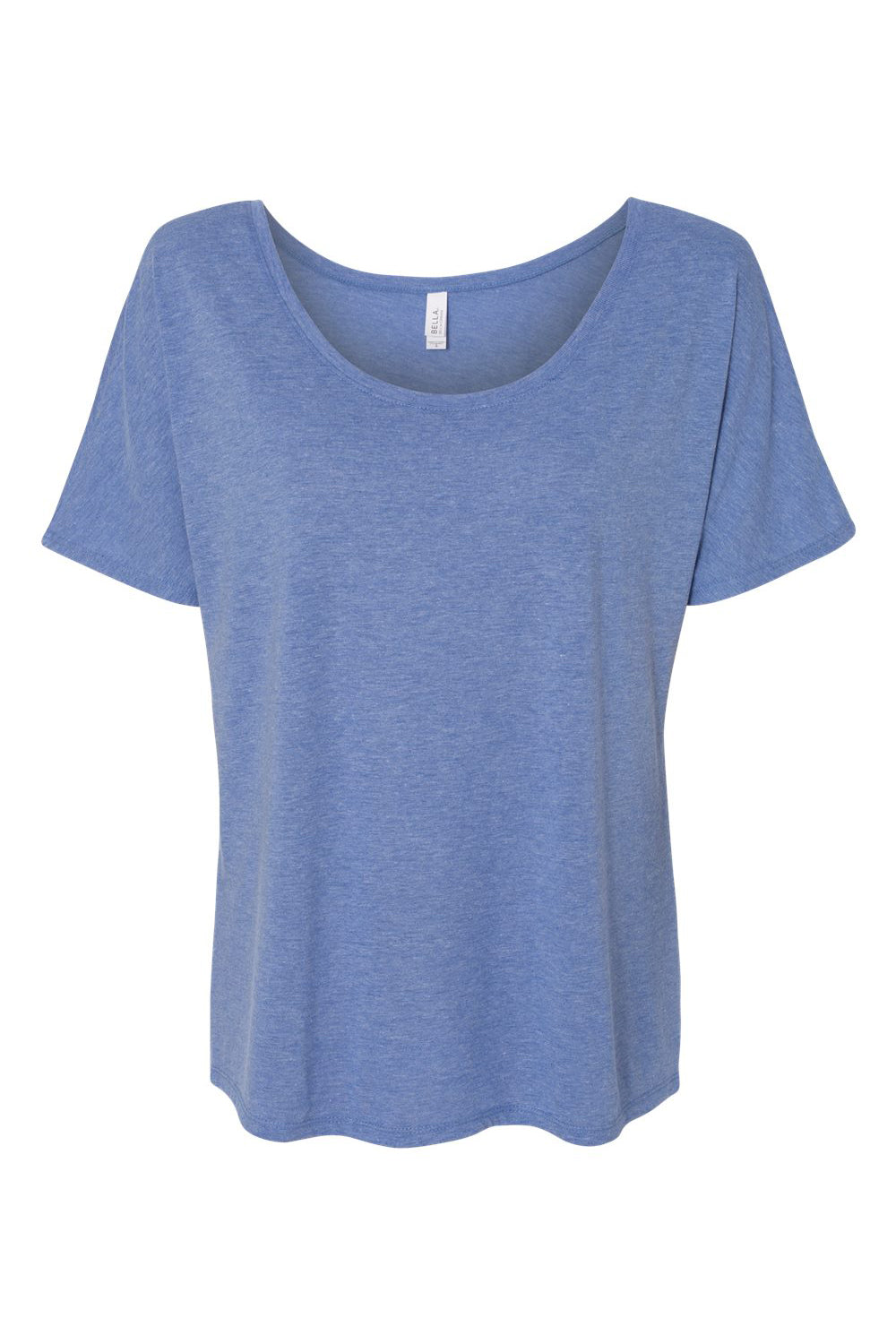 Bella + Canvas Womens Slouchy Short Sleeve Wide Neck T-Shirt - Blue Triblend - Closeout
