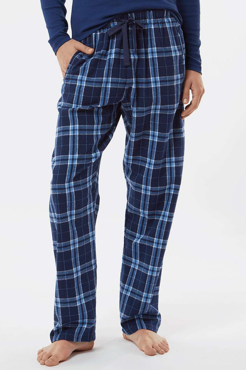 Boxercraft Womens Haley Flannel Pants w/ Pockets - Navy Blue/Columbia Blue