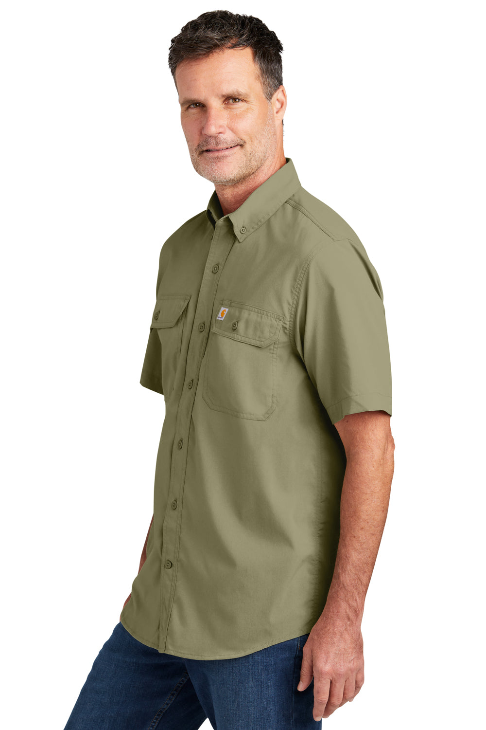Carhartt Mens Force Moisture Wicking Short Sleeve Button Down Shirt w/ Double Pockets - Burnt Olive Green