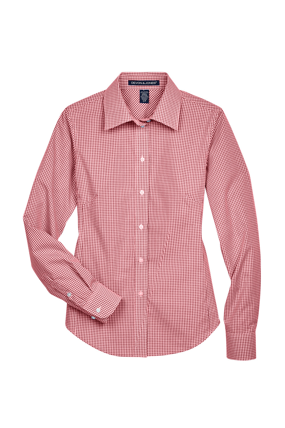 Devon & Jones Womens Crown Woven Collection Wrinkle Resistant Long Sleeve Button Down Shirt - Red