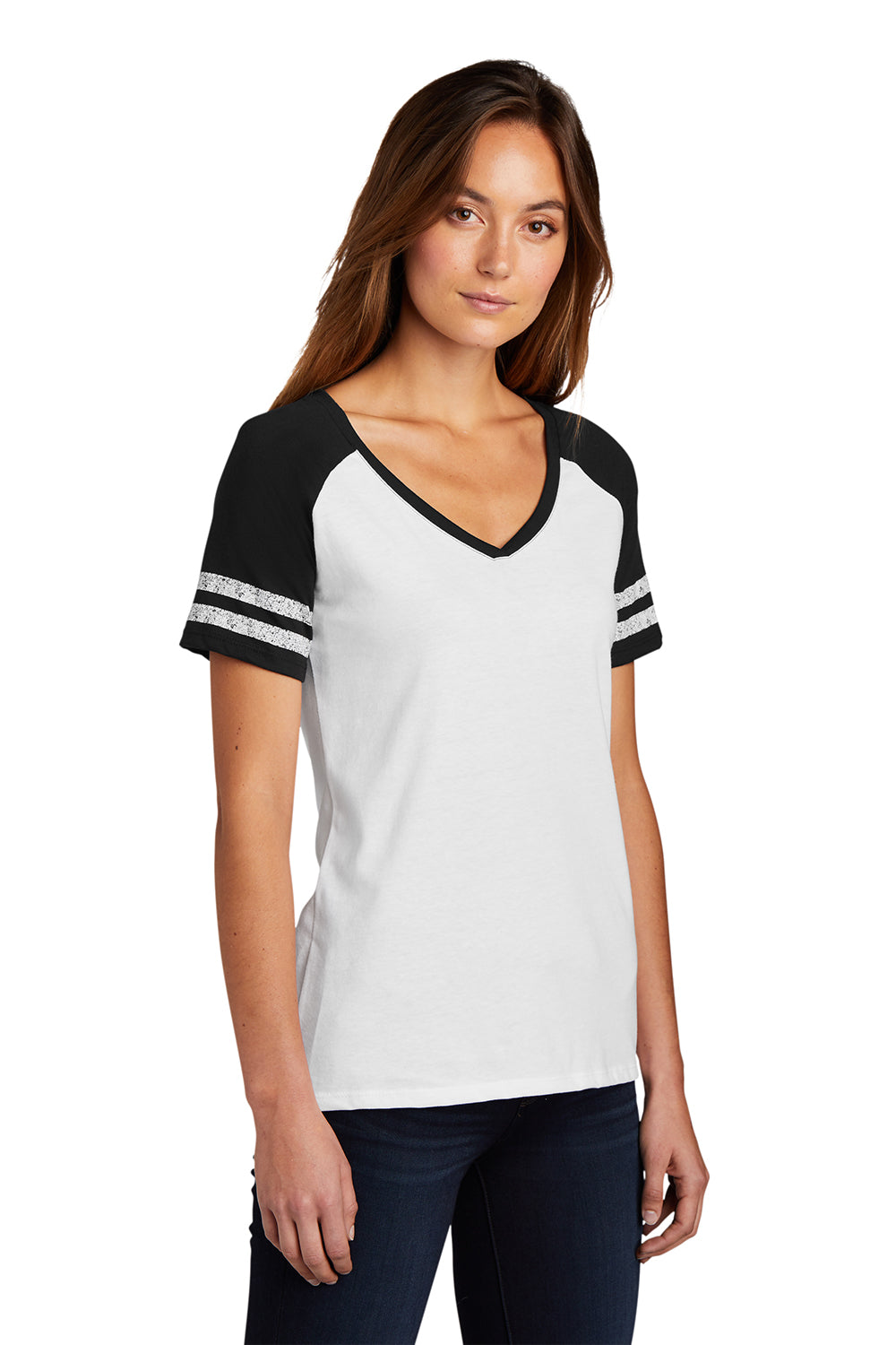 District Womens Game Short Sleeve V-Neck T-Shirt - White/Black