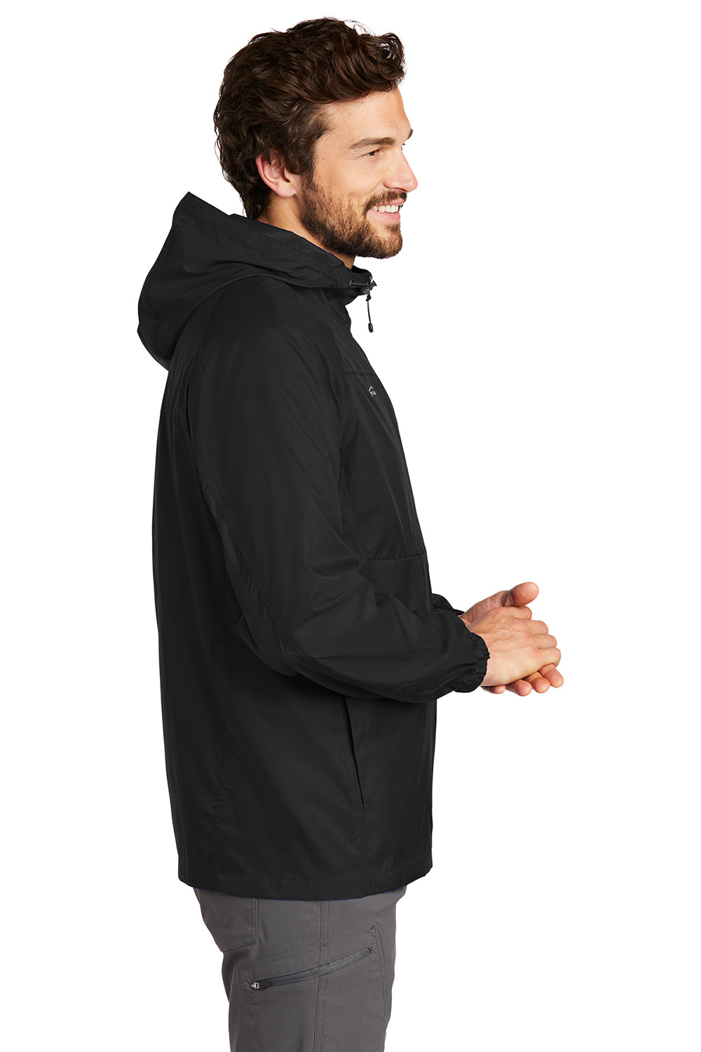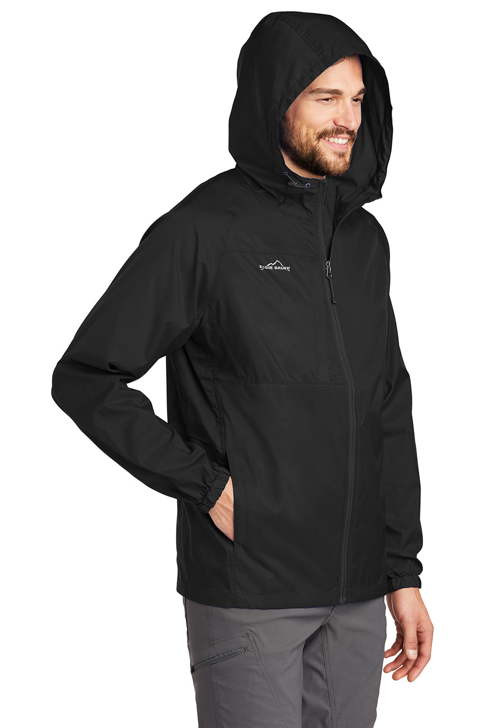 Eddie Bauer Mens Packable Wind Resistant Full Zip Hooded Jacket - Black