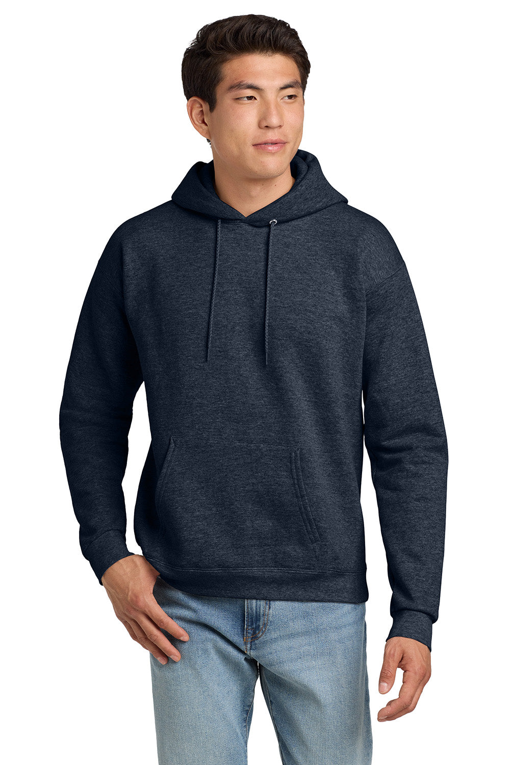 Hanes Mens EcoSmart Print Pro XP Pill Resistant Hooded Sweatshirt Hoodie w/ Pouch Pocket - Heather Navy Blue