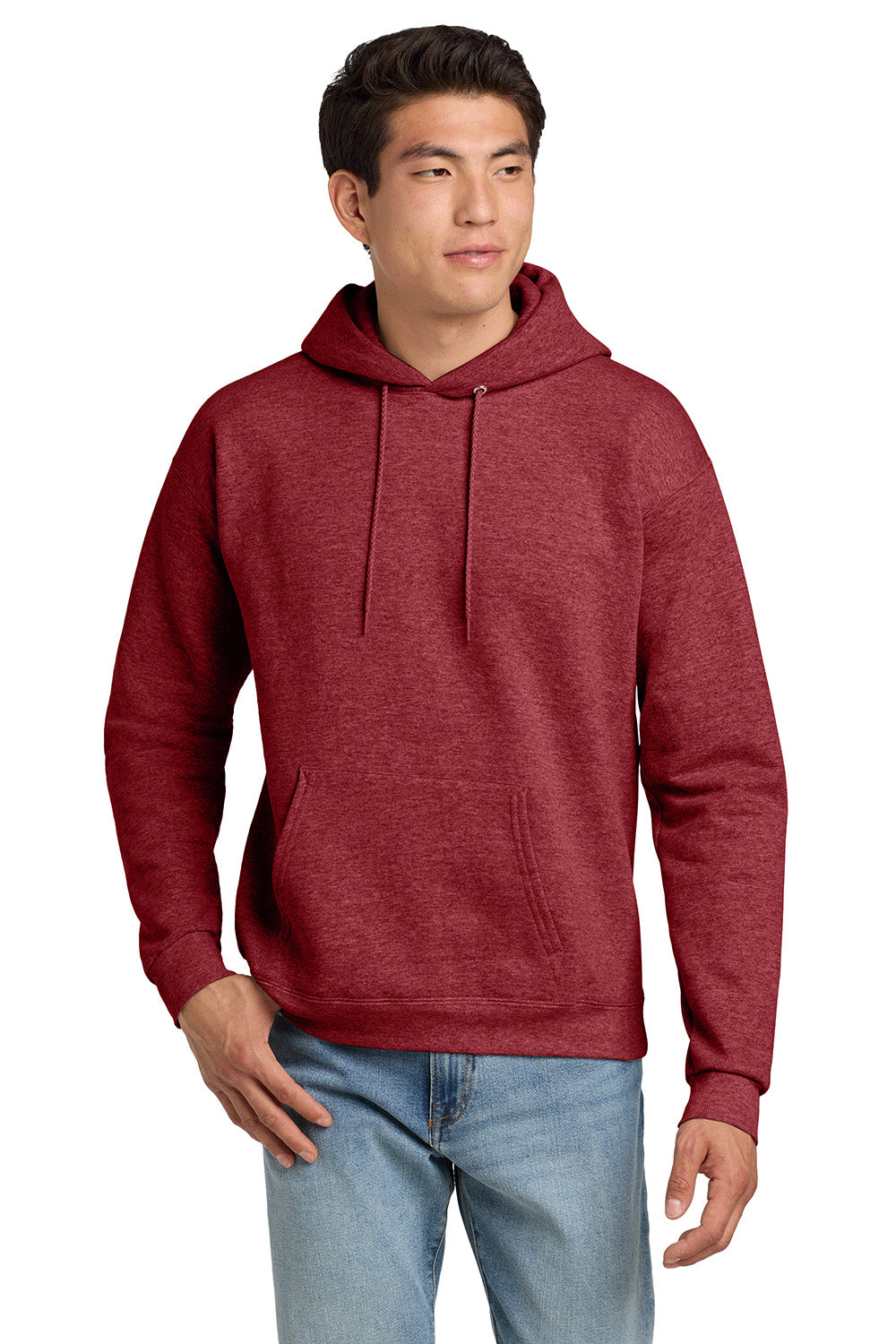 Hanes Mens EcoSmart Print Pro XP Pill Resistant Hooded Sweatshirt Hoodie w/ Pouch Pocket - Heather Red