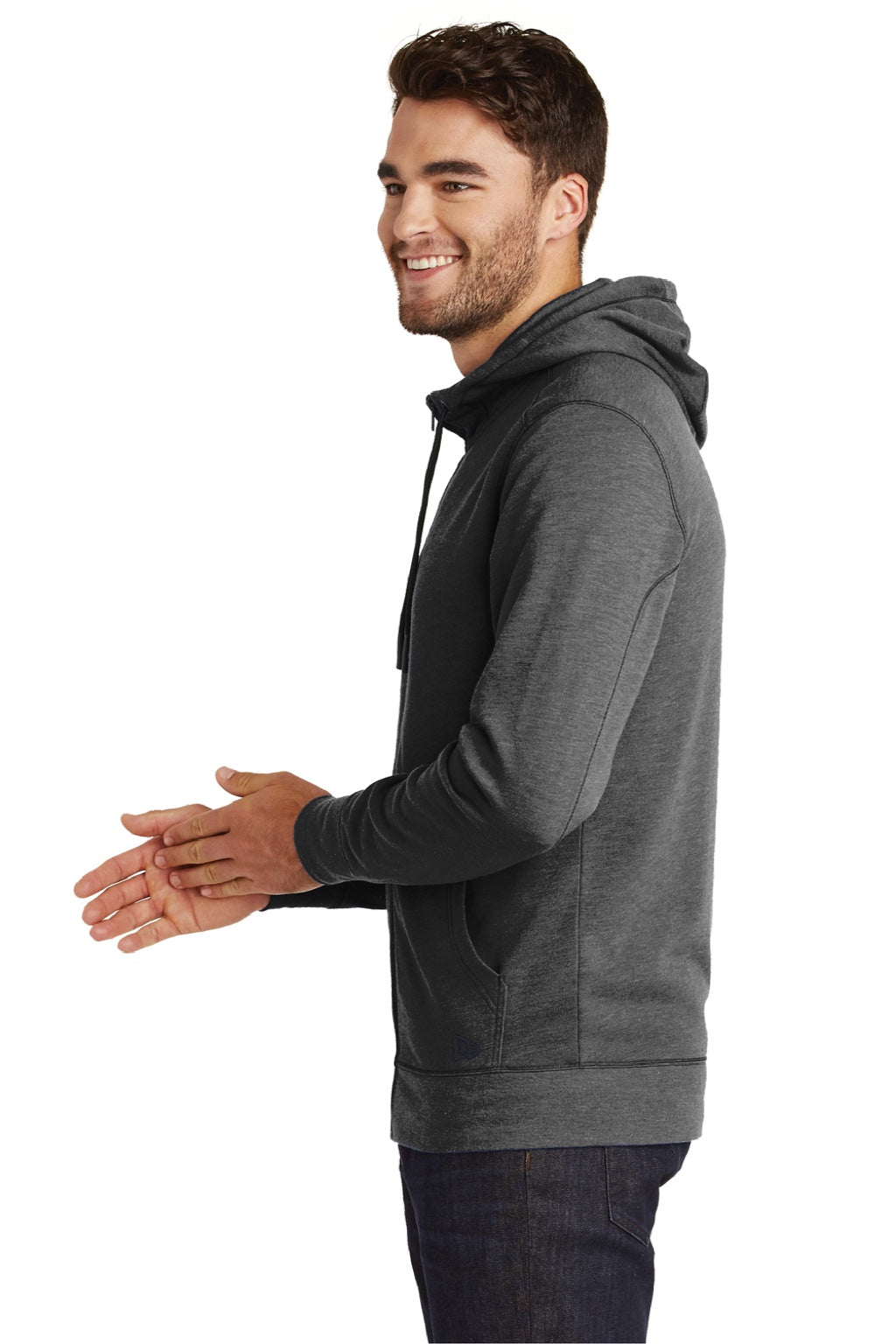 New Era Mens Fleece Full Zip Hooded Sweatshirt Hoodie w/ Pockets - Heather Black
