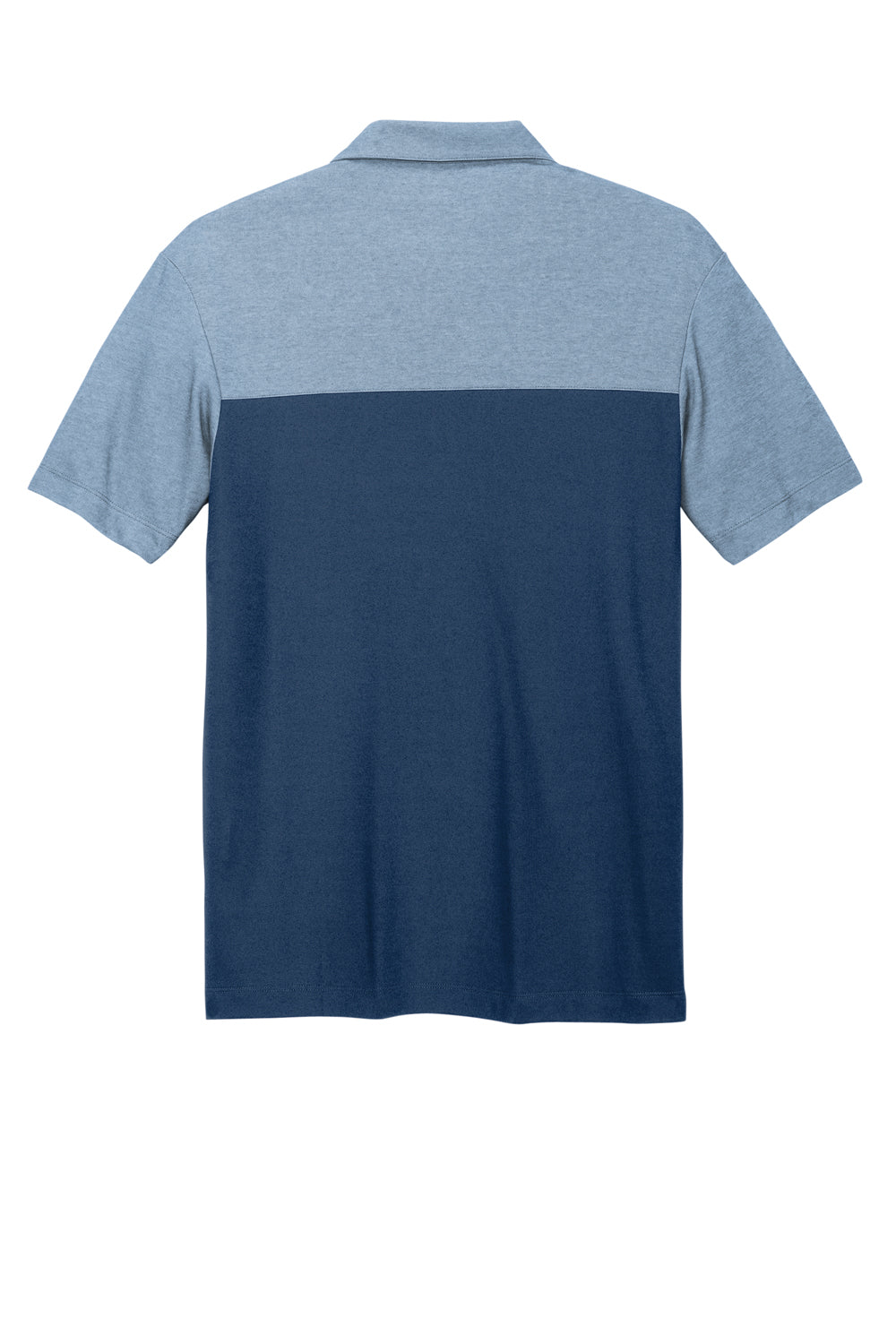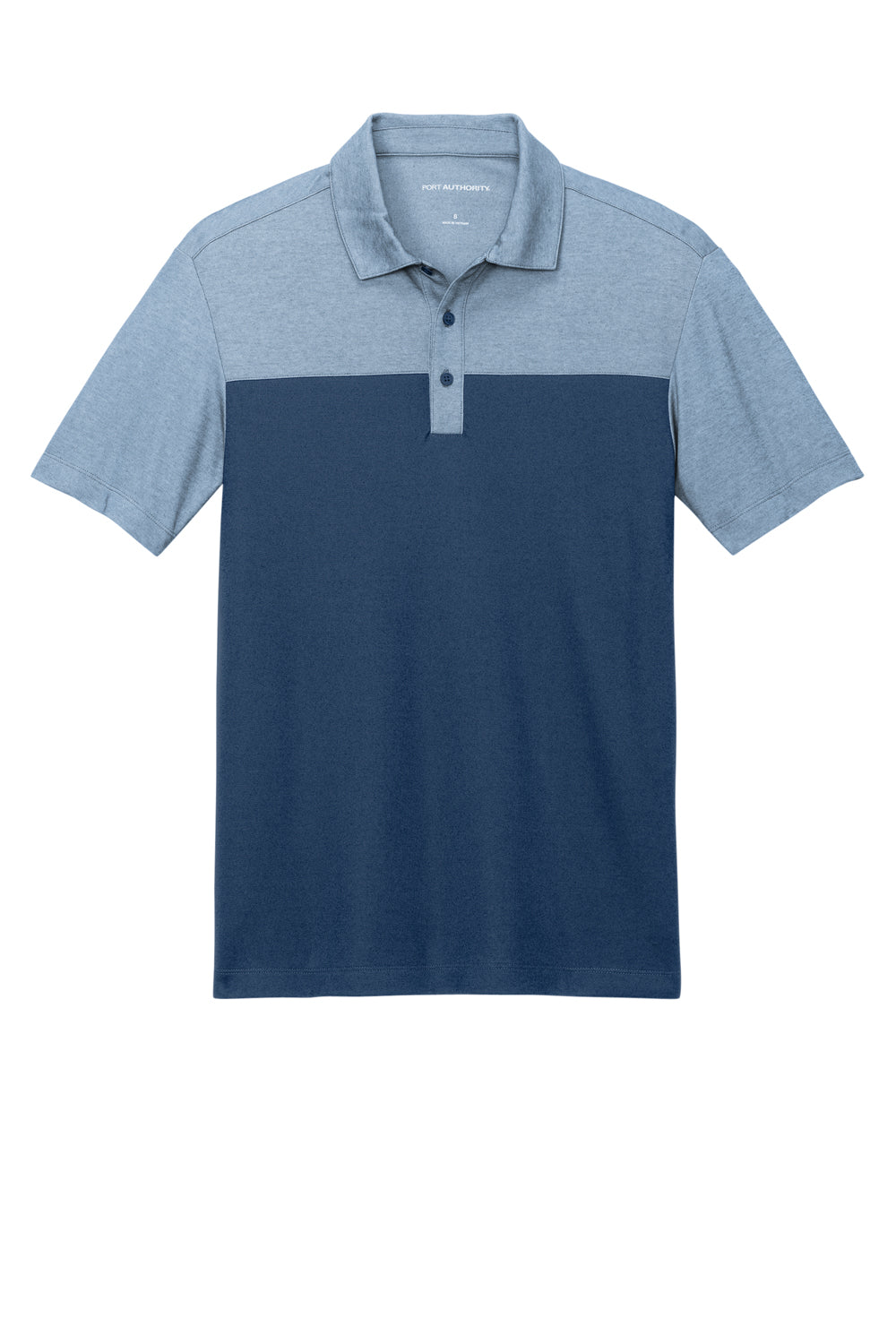 Port Authority Mens Fine Pique Blocked Moisture Wicking Short Sleeve Polo Shirt - Heather Aegean Blue