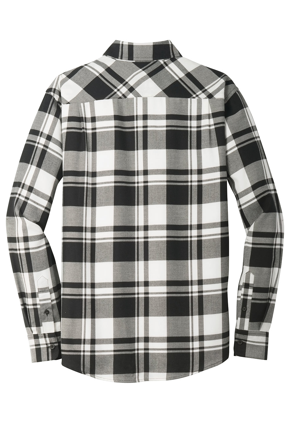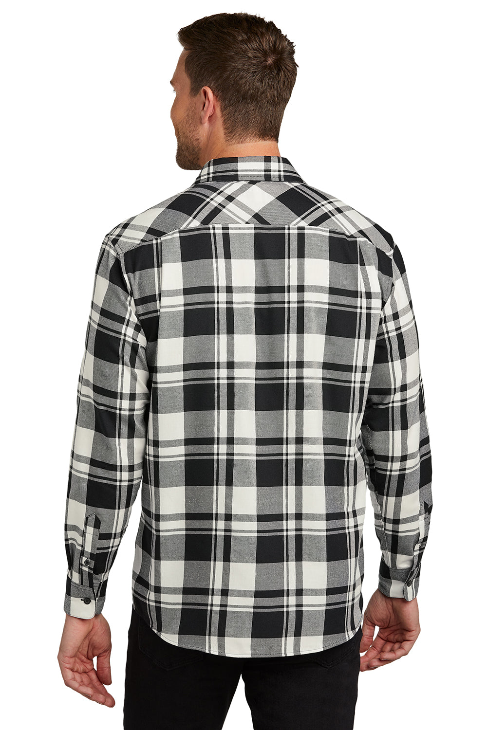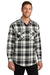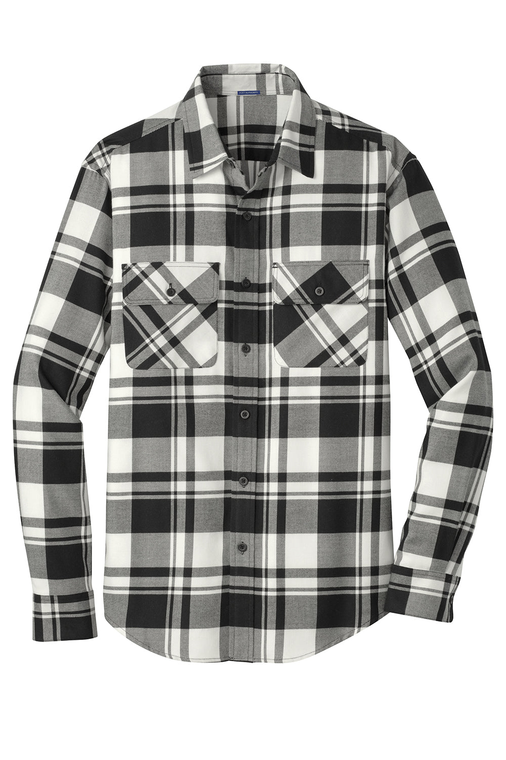 Port Authority Mens Flannel Long Sleeve Button Down Shirt w/ Double Pockets - Snow White/Black