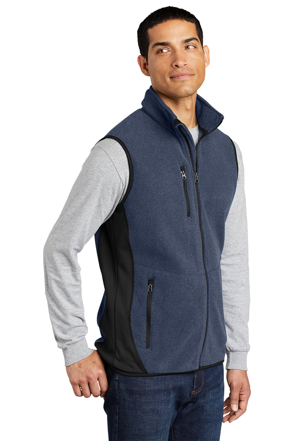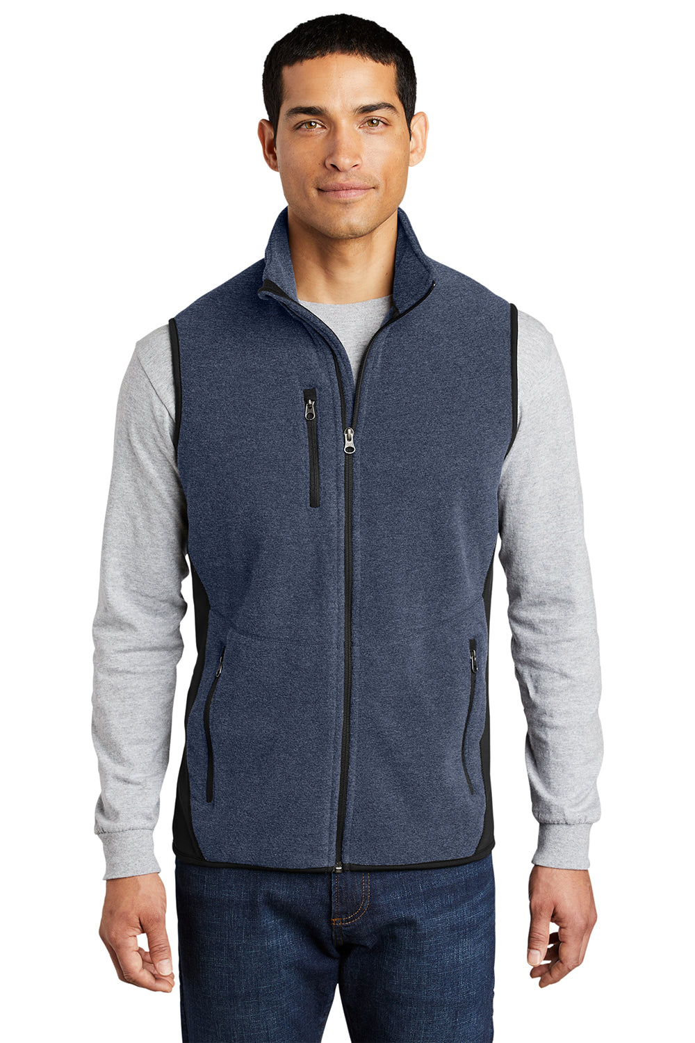 Port Authority Mens R-Tek Pro Pill Resistant Fleece Full Zip Vest - Heather Navy Blue/Black