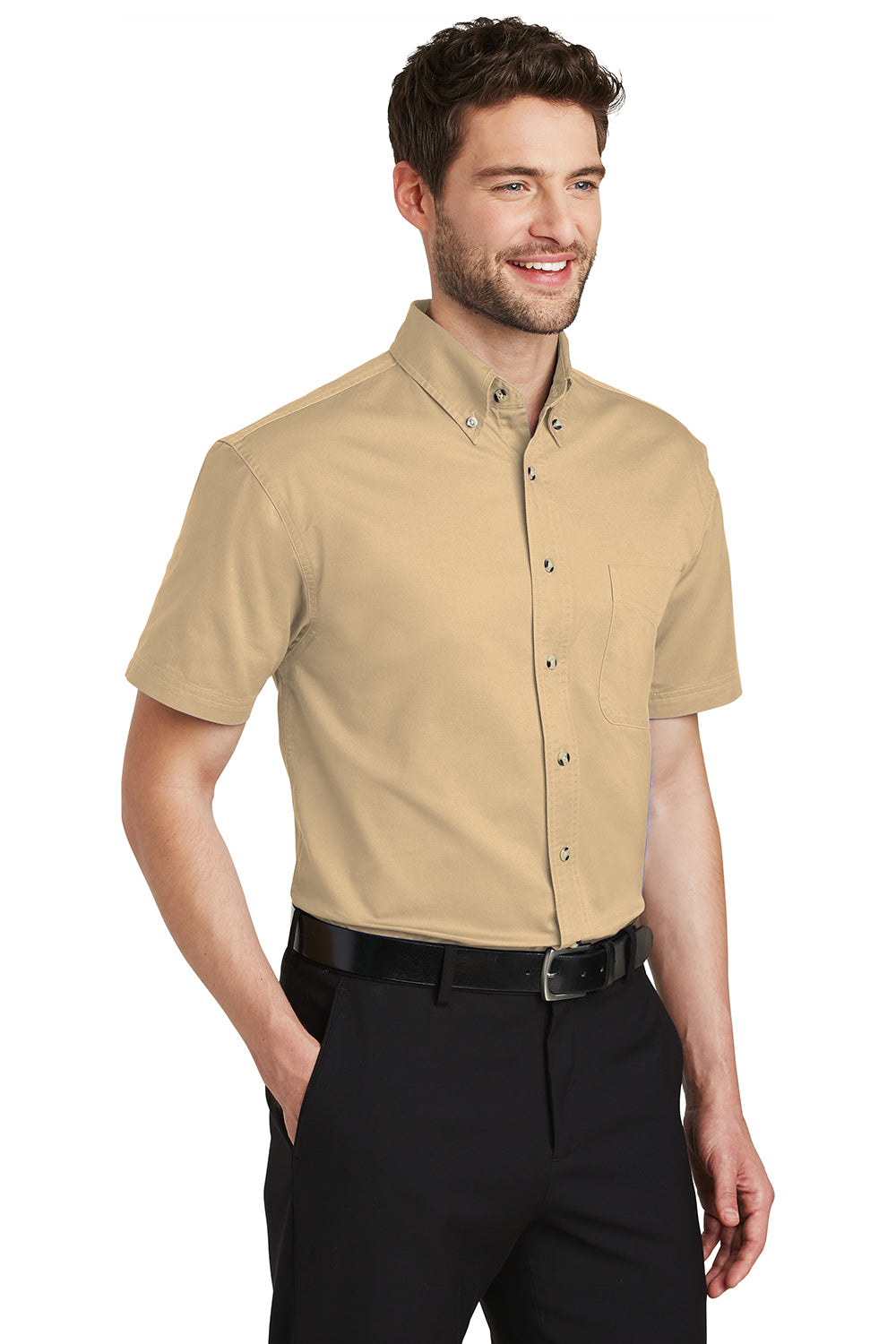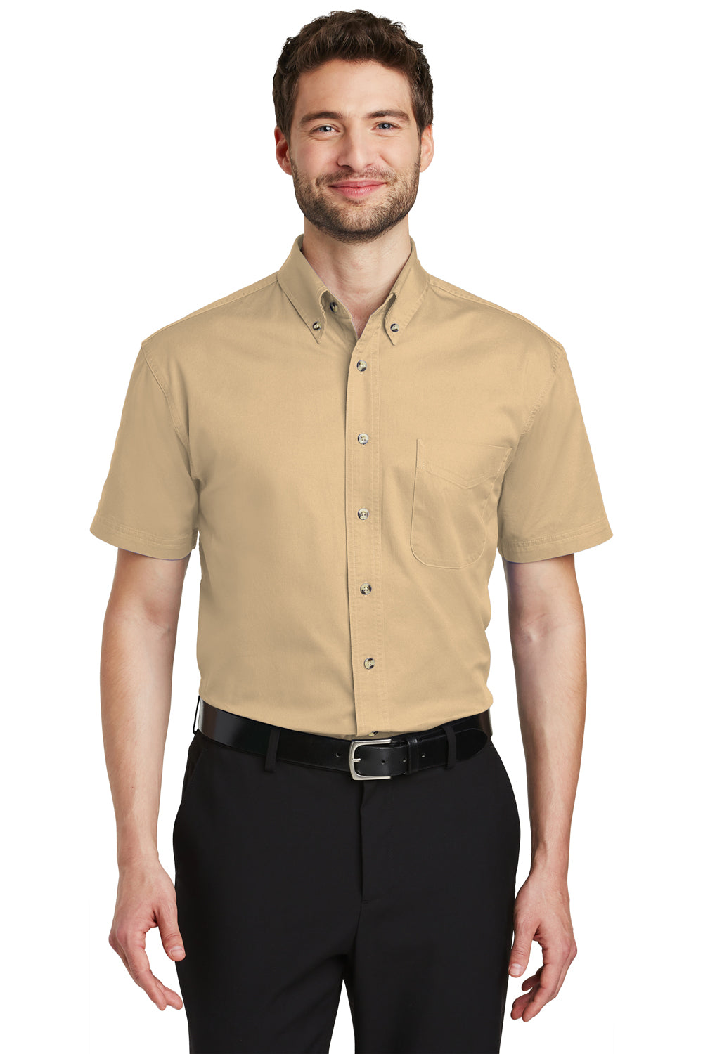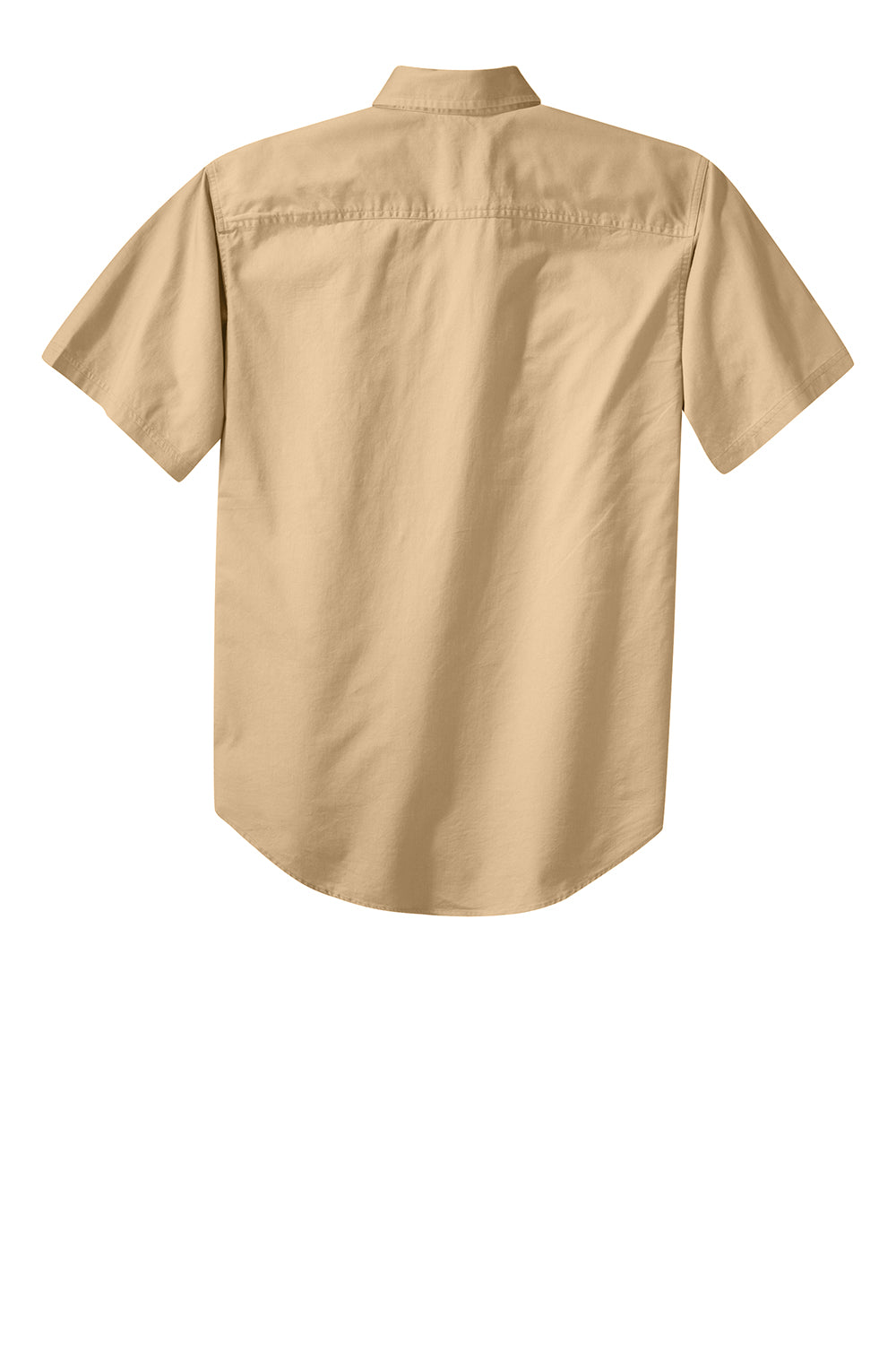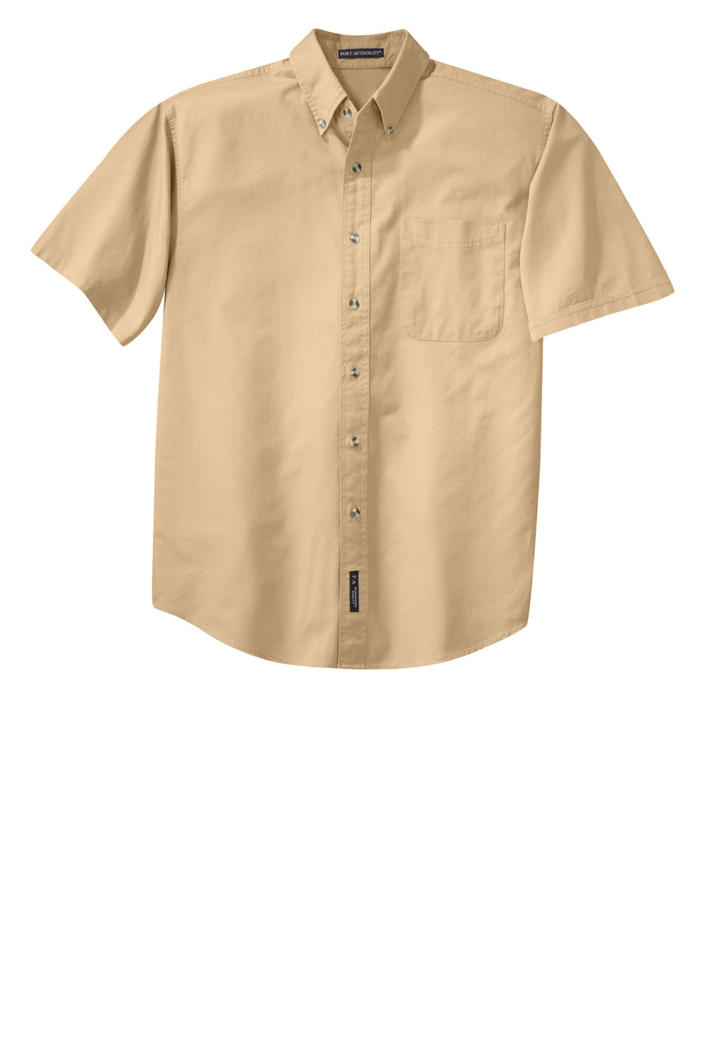 Port Authority Mens Short Sleeve Button Down Shirt w/ Pocket - Stone - Closeout
