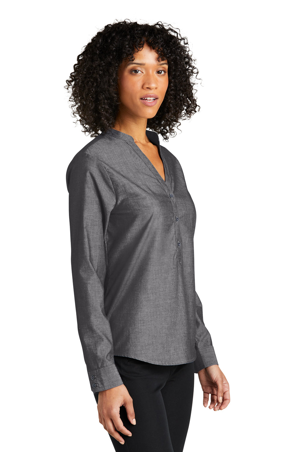 Port Authority Womens Chambray Easy Care Long Sleeve Button Down Shirt - Deep Black - Closeout
