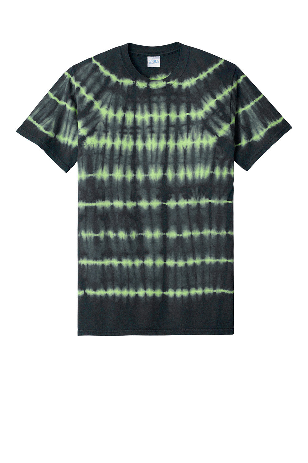Port & Company Mens Allover Stripe Tie-Dye Short Sleeve Crewneck T-Shirt - Green Tea/Black