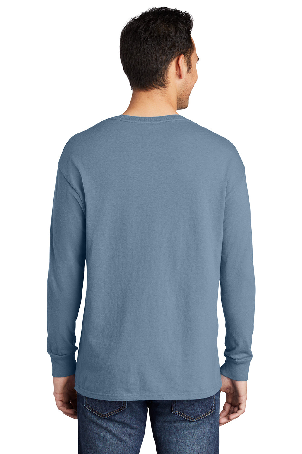 Port & Company Mens Beach Wash Long Sleeve Crewneck T-Shirt - Denim Blue