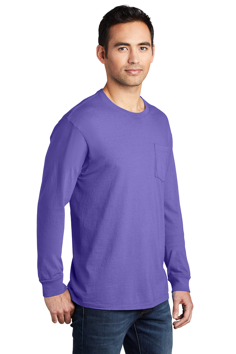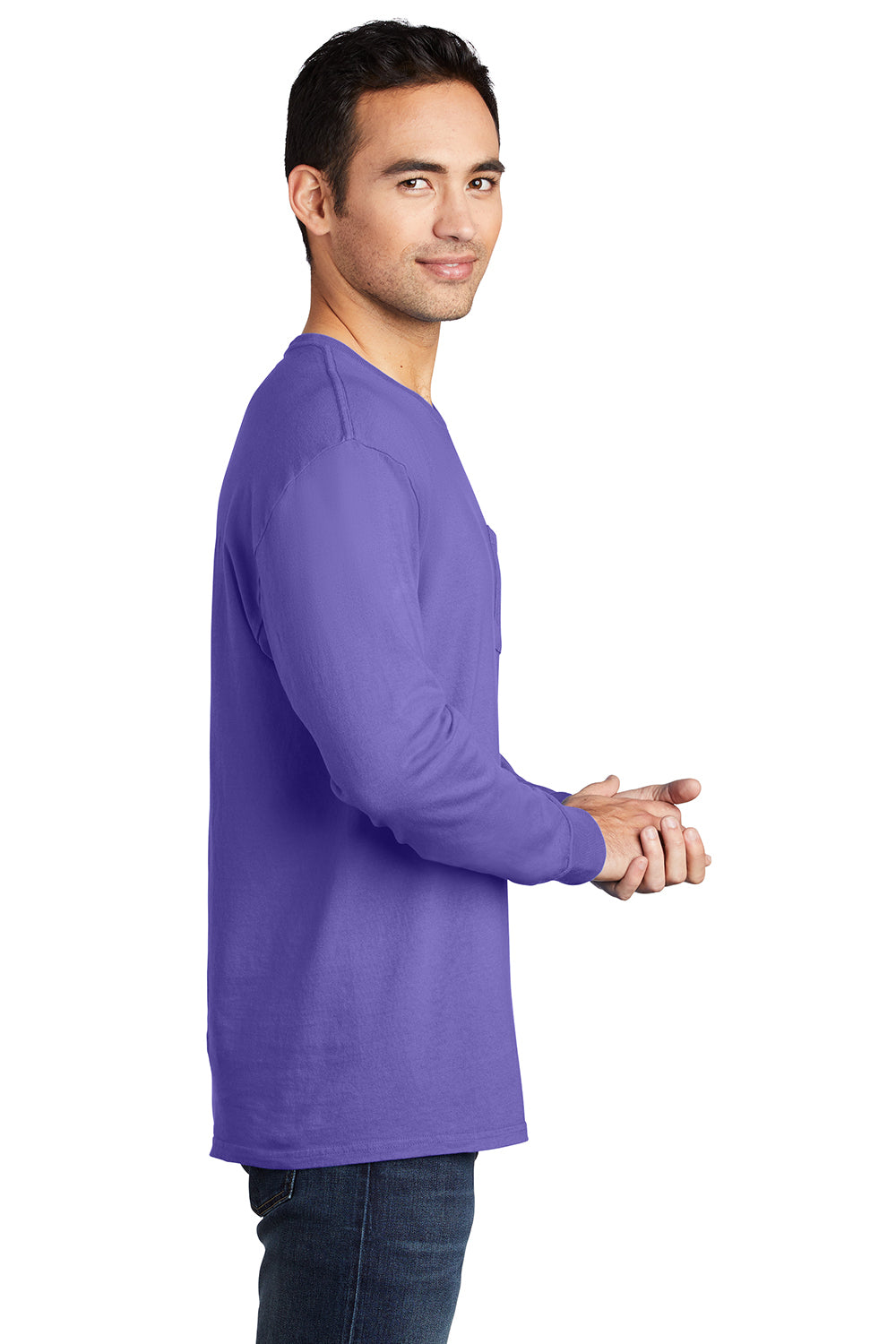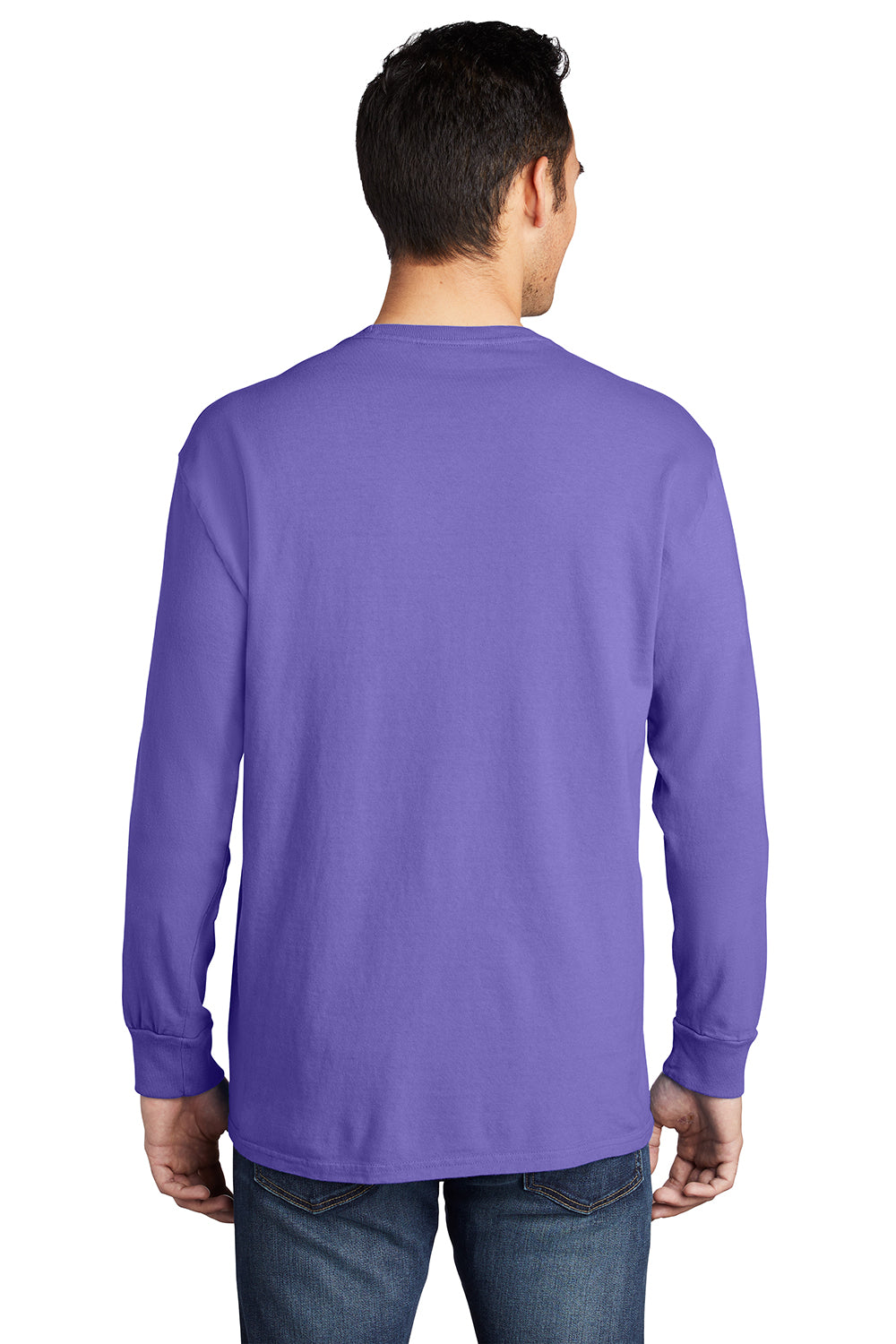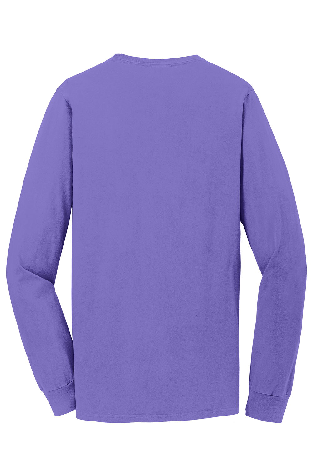 Port & Company Mens Beach Wash Long Sleeve Crewneck T-Shirt w/ Pocket - Amethyst Purple - Closeout