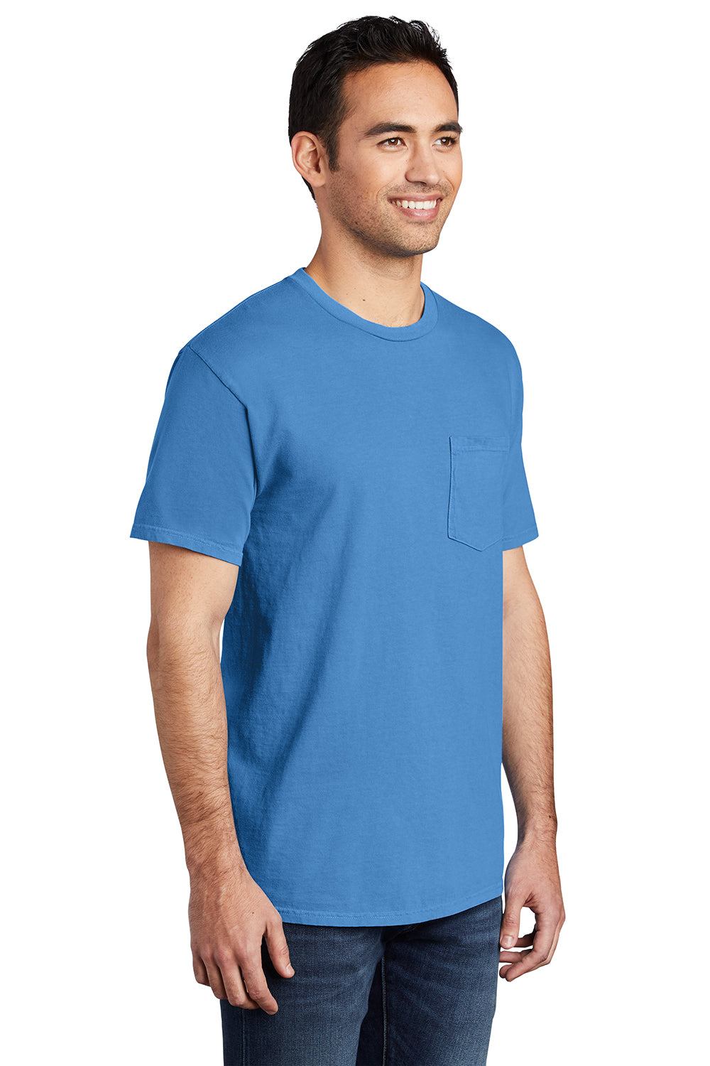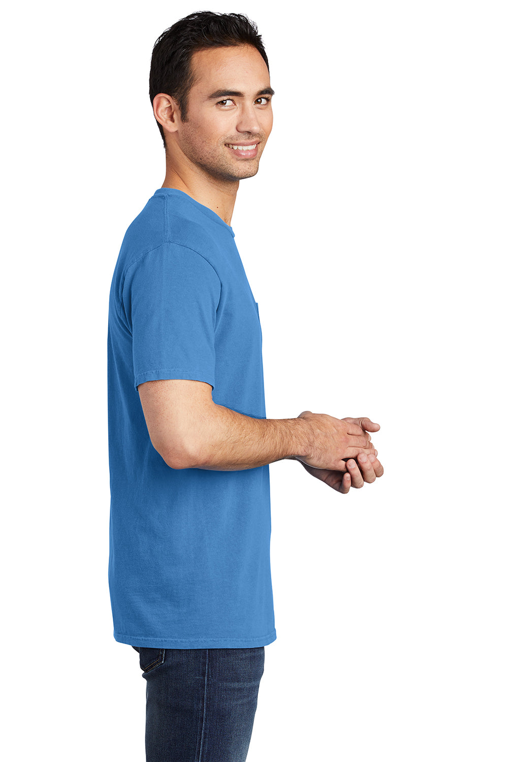 Port & Company Mens Beach Wash Short Sleeve Crewneck T-Shirt w/ Pocket - Blue Moon