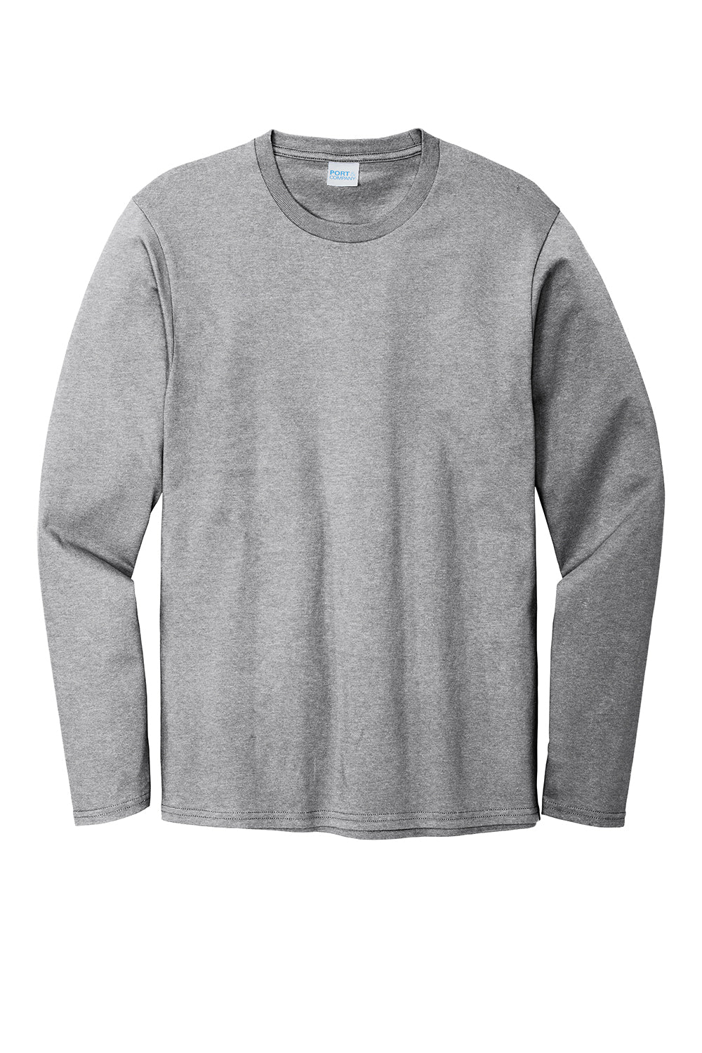 Port & Company Mens Bouncer Long Sleeve Crewneck T-Shirt - Heather Grey