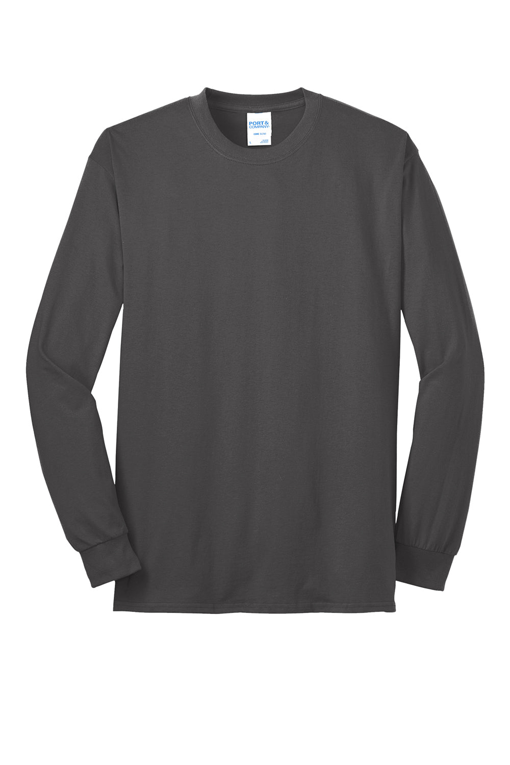 Port & Company Mens Core Long Sleeve Crewneck T-Shirt - Charcoal Grey