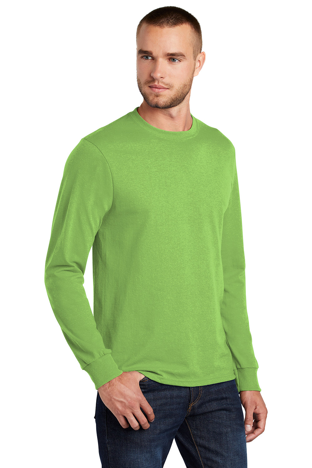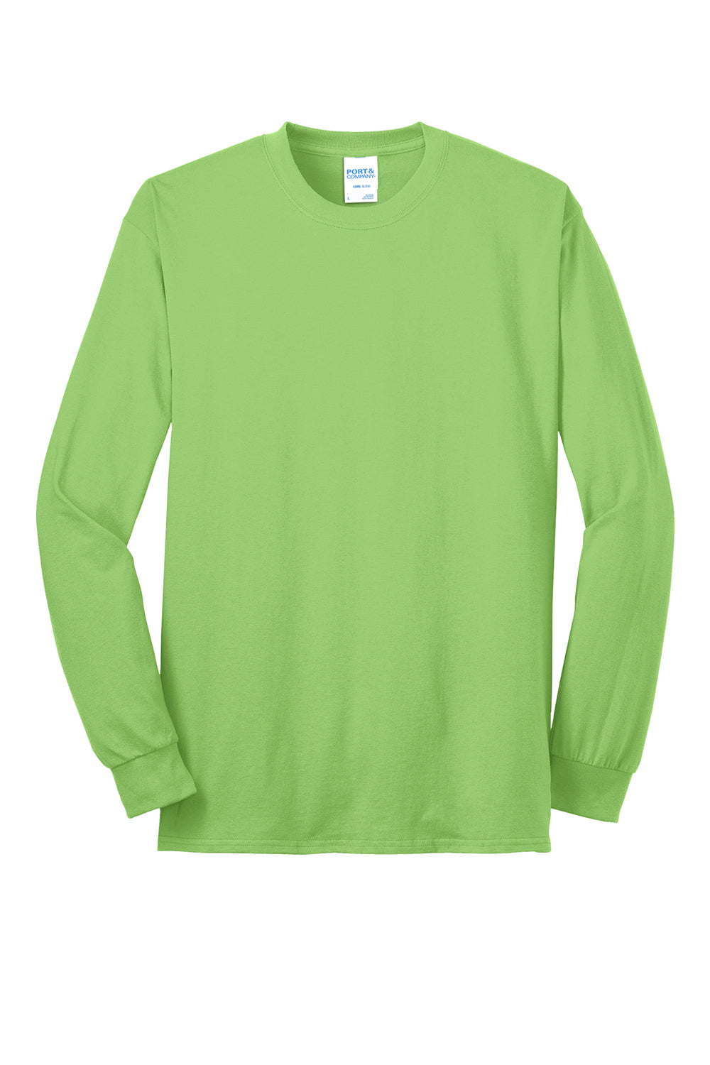 Port & Company Mens Core Long Sleeve Crewneck T-Shirt - Lime Green