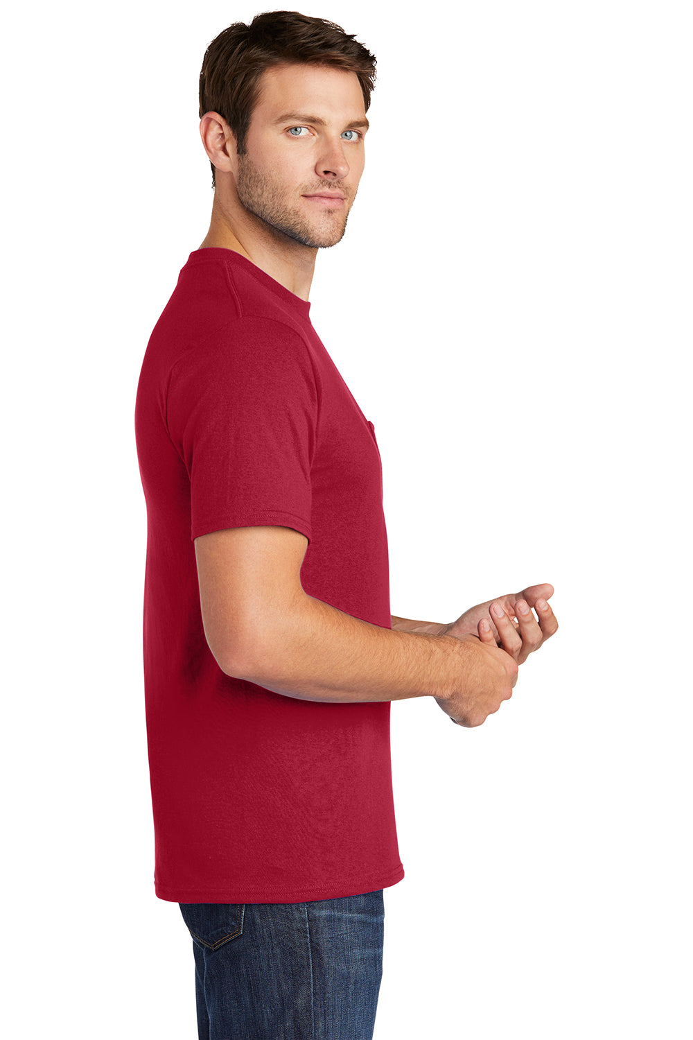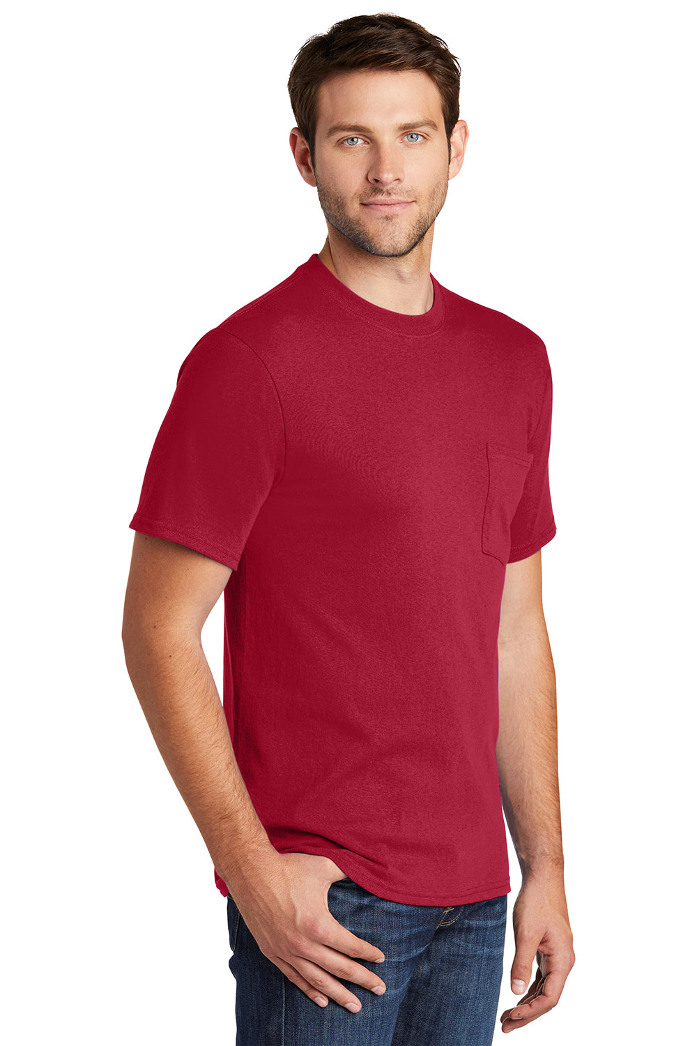 Port & Company Mens Core Short Sleeve Crewneck T-Shirt w/ Pocket - Red