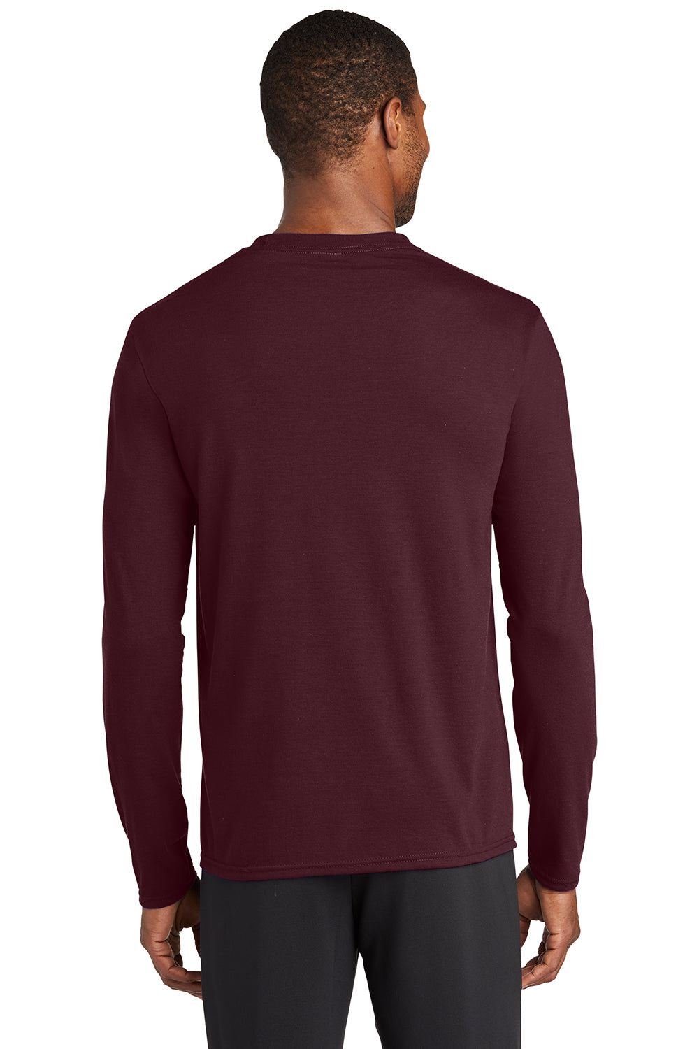 Port & Company Mens Dry Zone Performance Moisture Wicking Long Sleeve Crewneck T-Shirt - Athletic Maroon
