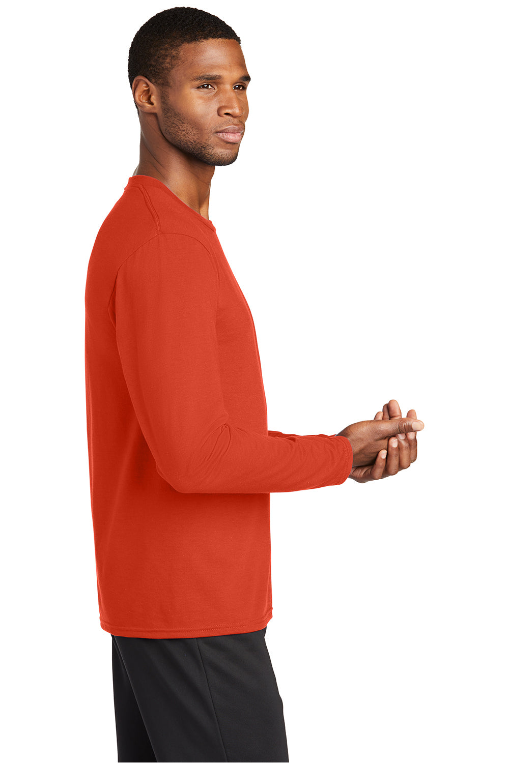 Port & Company Mens Dry Zone Performance Moisture Wicking Long Sleeve Crewneck T-Shirt - Orange