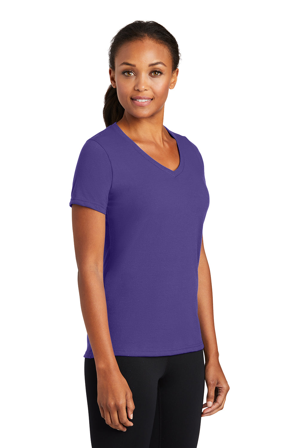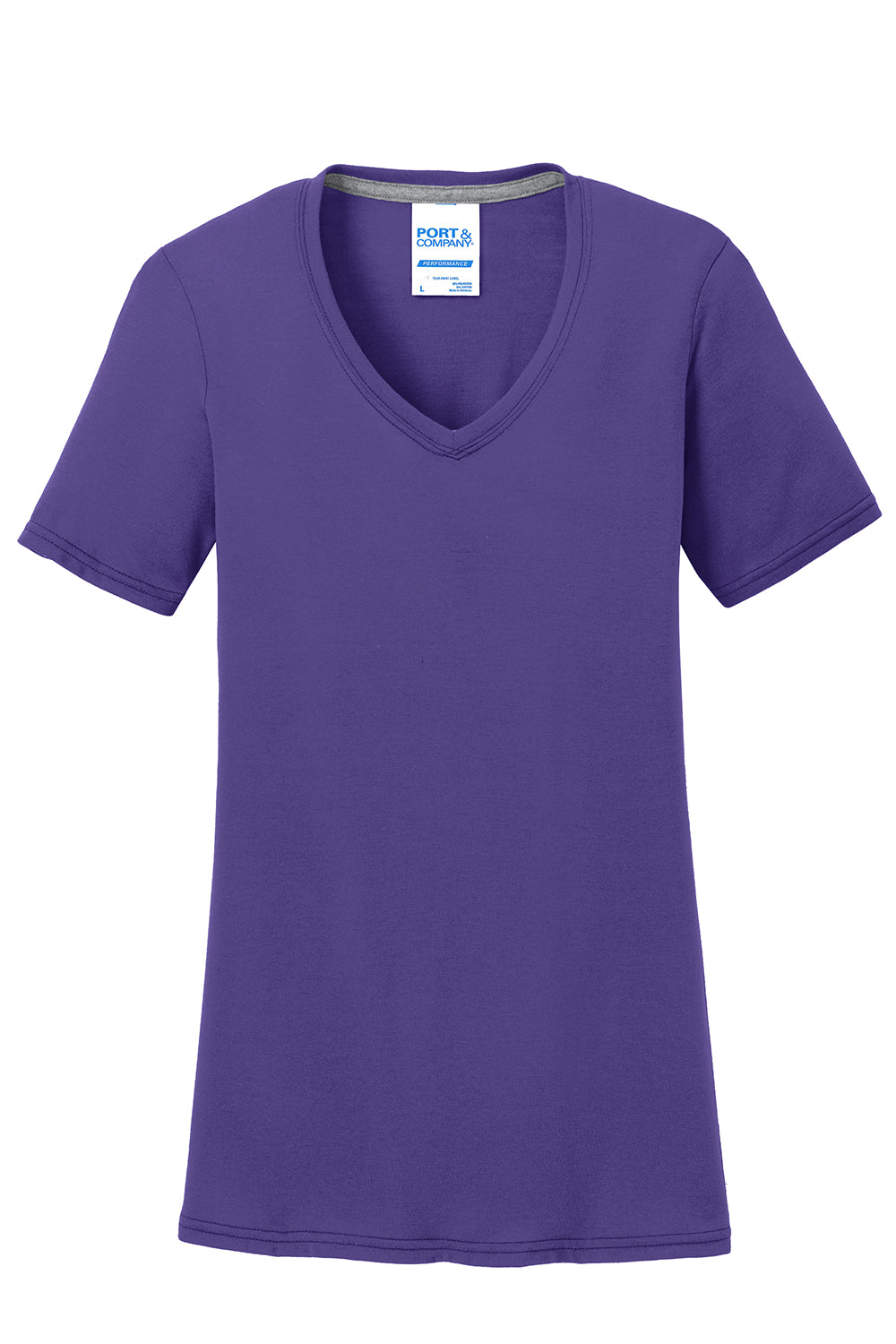 Port & Company Womens Dry Zone Performance Moisture Wicking Short Sleeve V-Neck T-Shirt - Purple