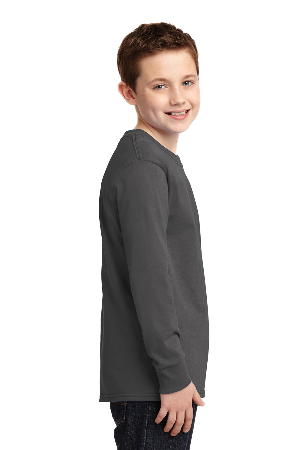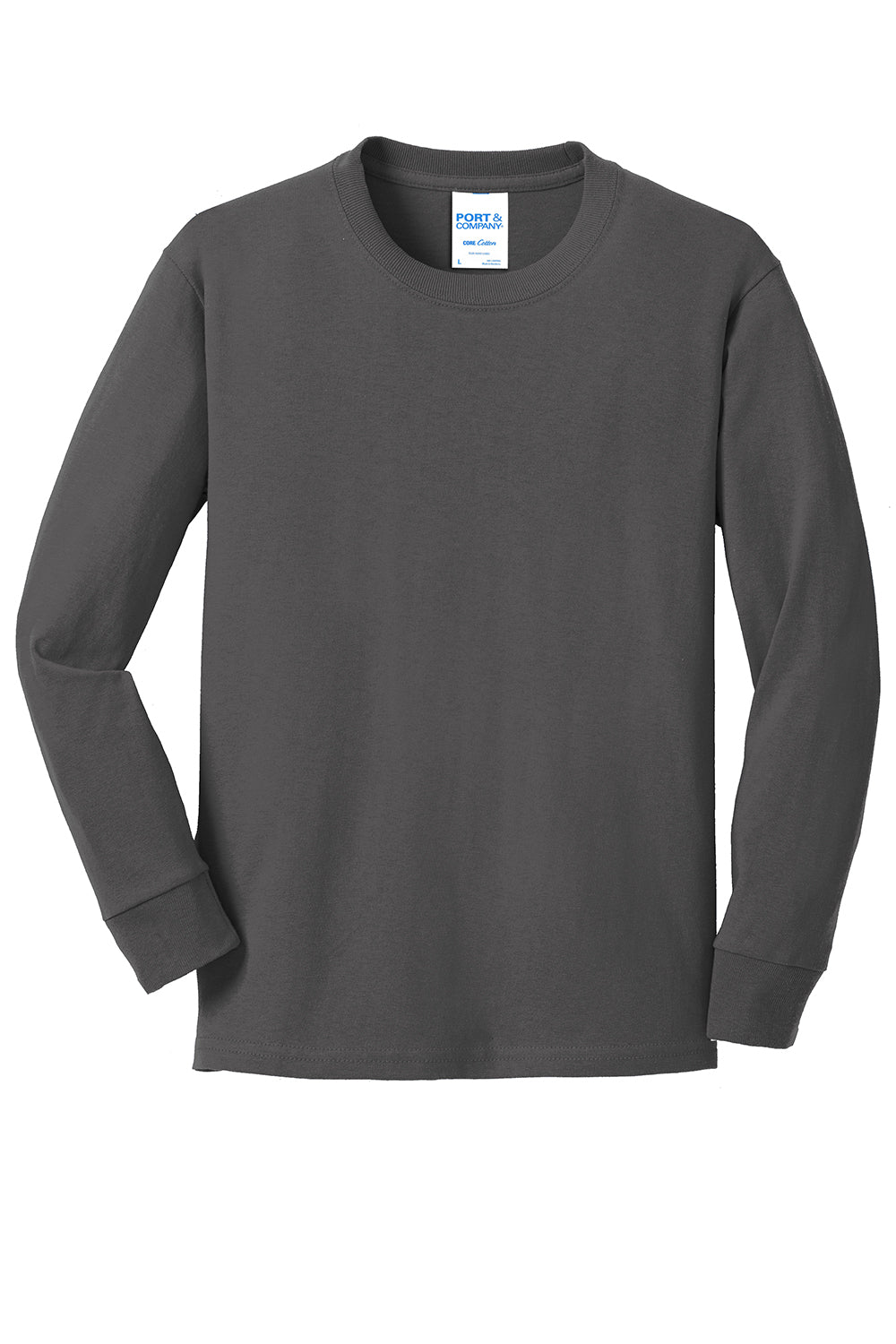 Port & Company Youth Core Long Sleeve Crewneck T-Shirt - Charcoal Grey