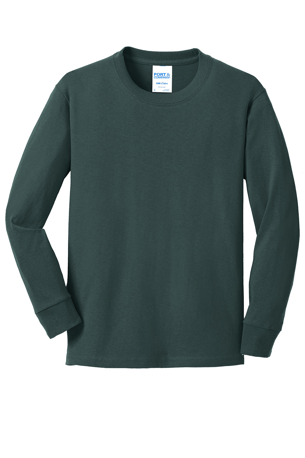 Port & Company Youth Core Long Sleeve Crewneck T-Shirt - Dark Green