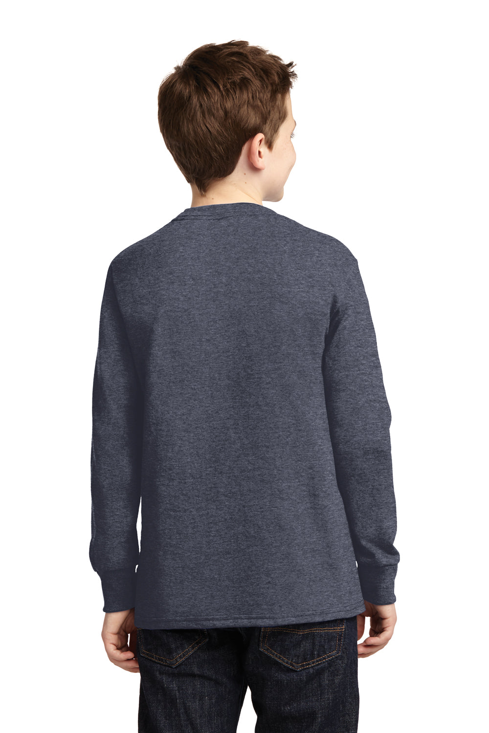 Port & Company Youth Core Long Sleeve Crewneck T-Shirt - Heather Navy Blue