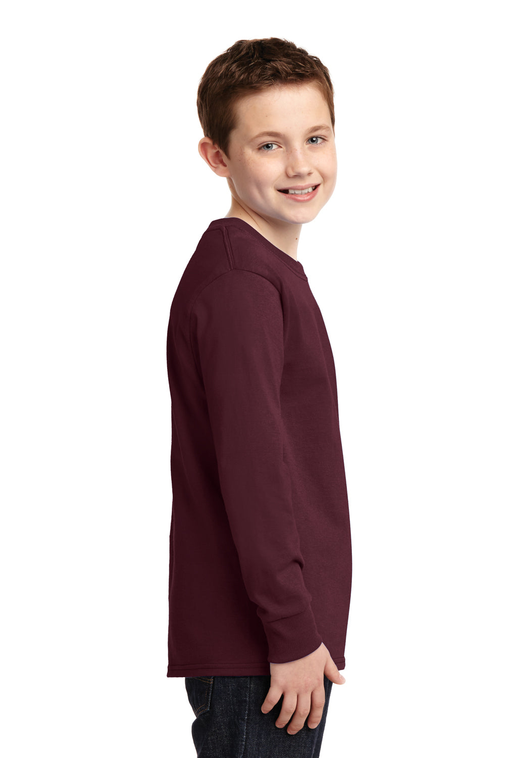 Port & Company Youth Core Long Sleeve Crewneck T-Shirt - Athletic Maroon