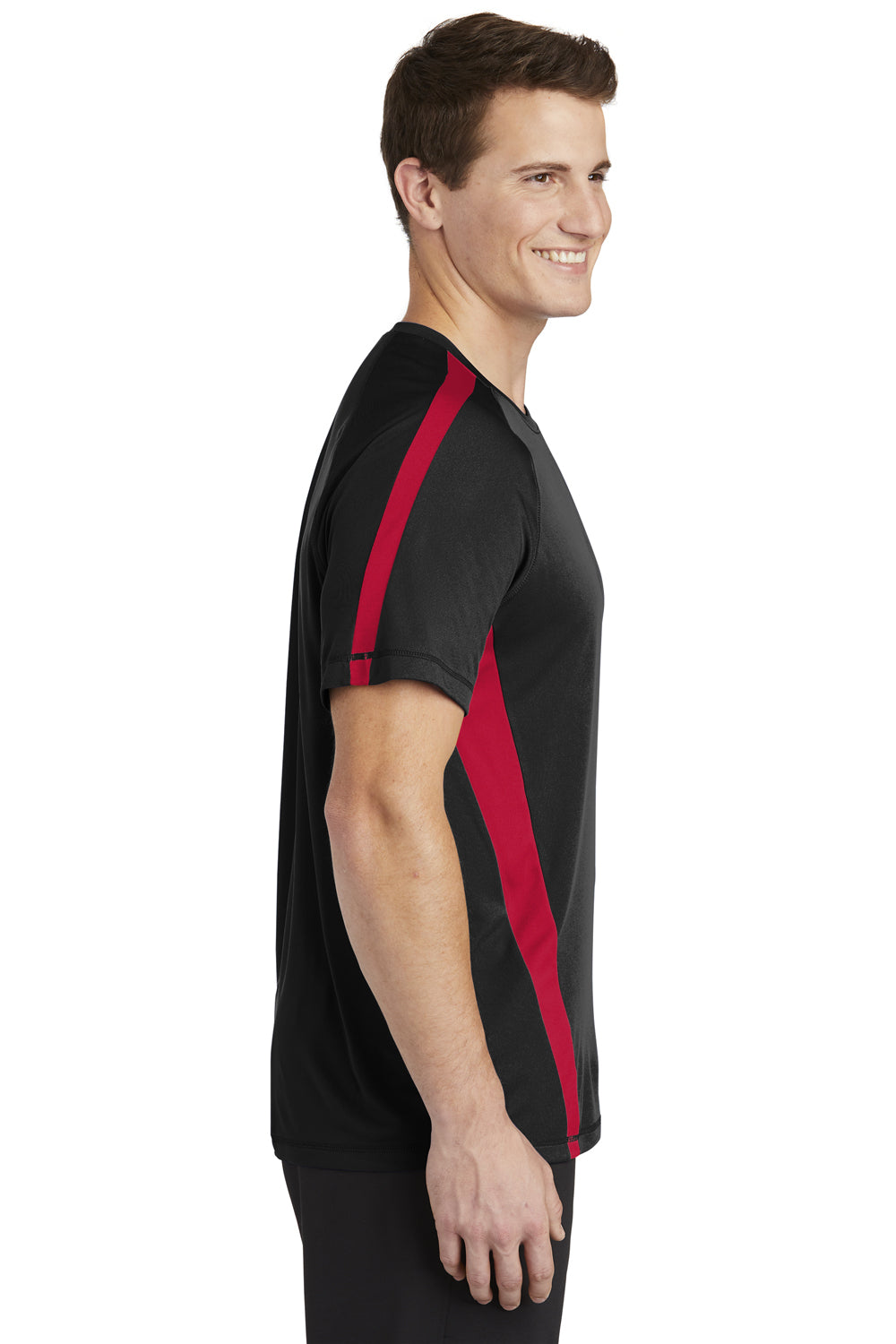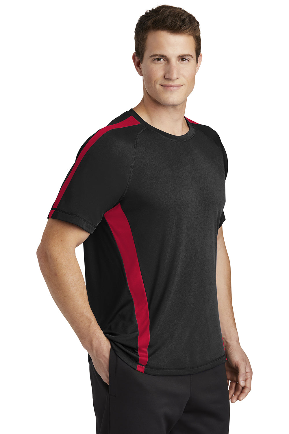 Sport-Tek Mens Competitor Moisture Wicking Short Sleeve Crewneck T-Shirt - Black/True Red