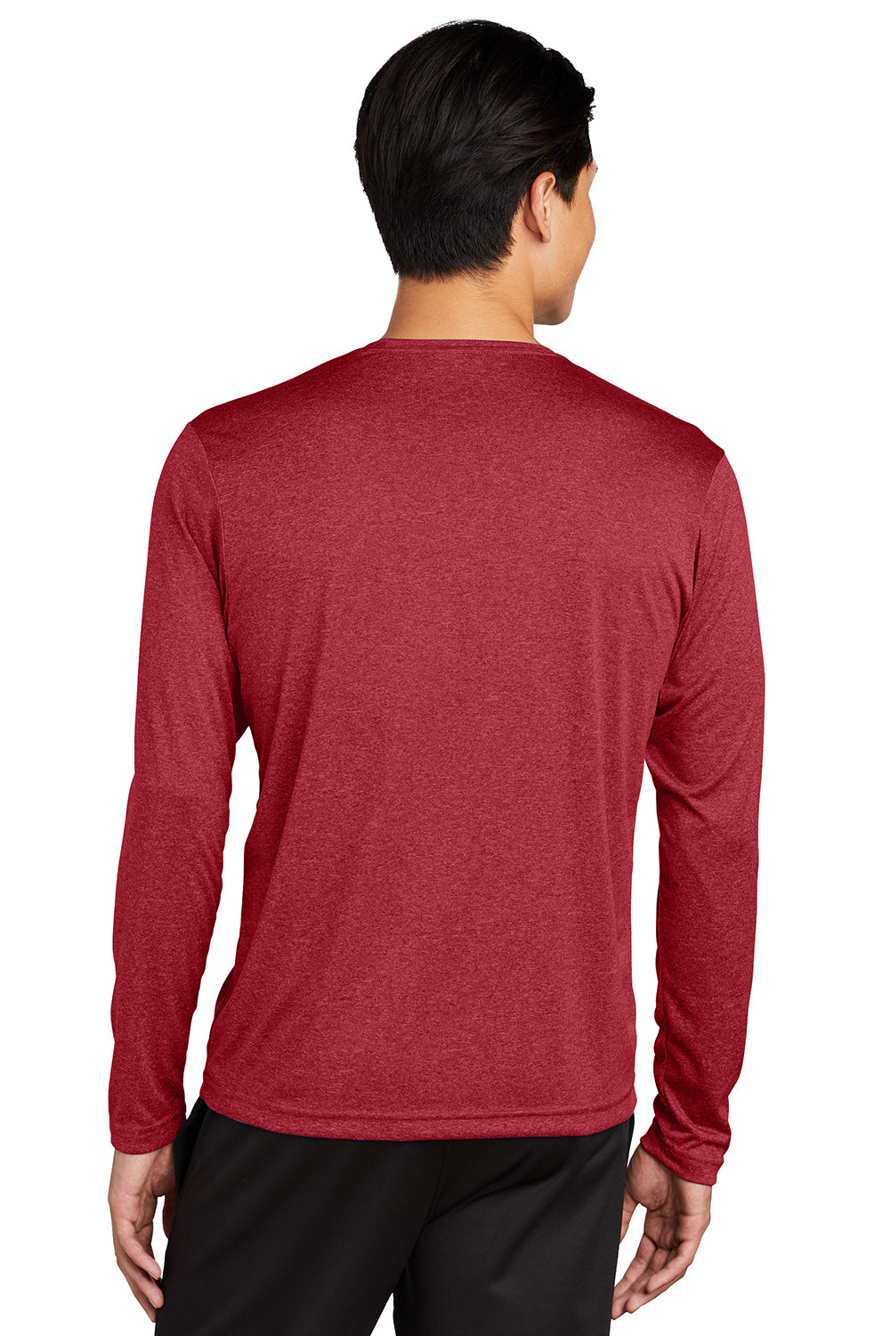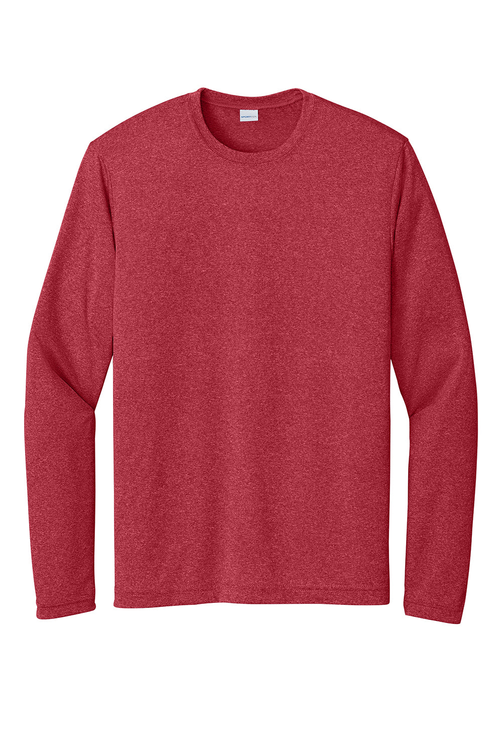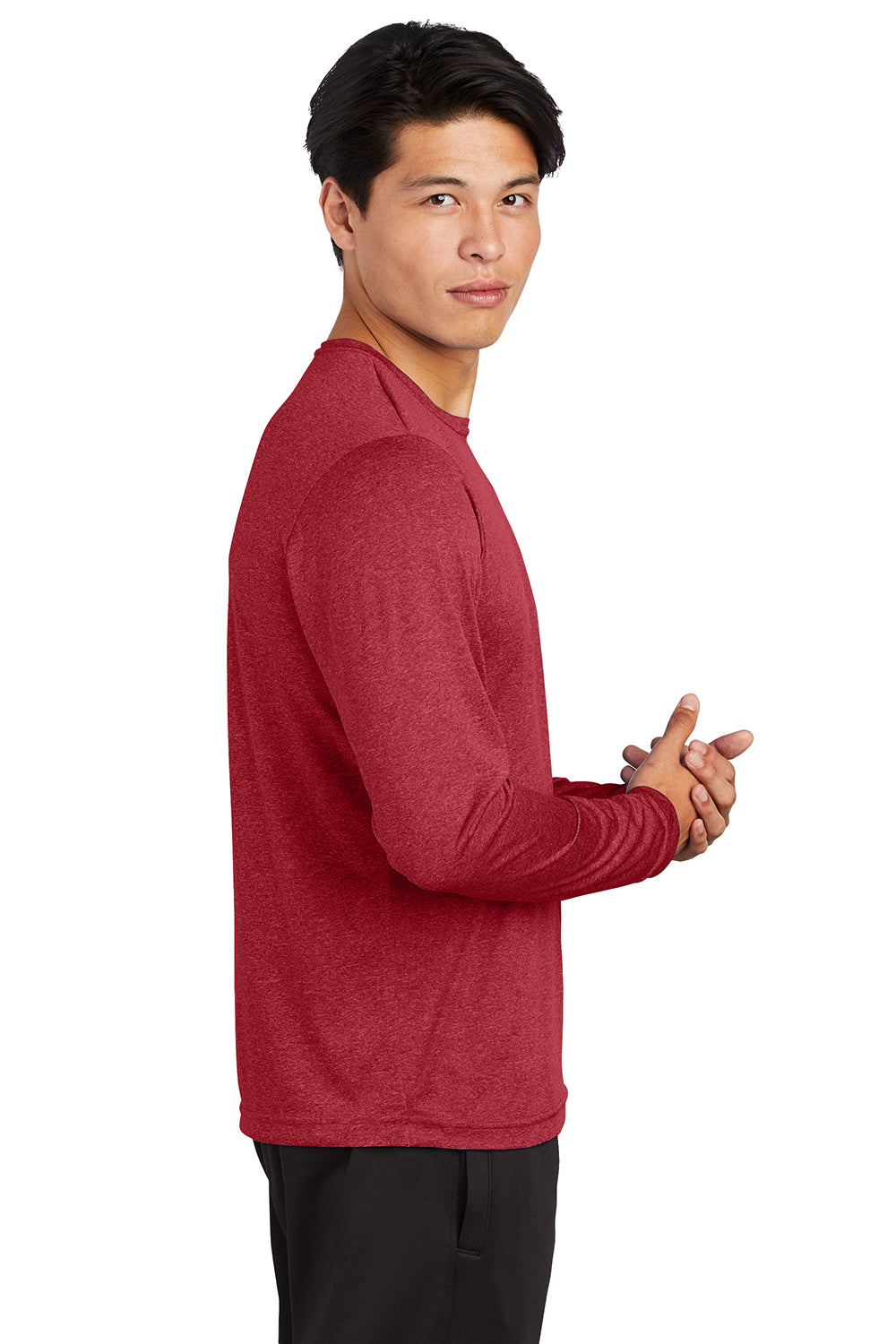 Sport-Tek Mens Contender Heather Moisture Wicking Long Sleeve Crewneck T-Shirt - Heather Scarlet Red