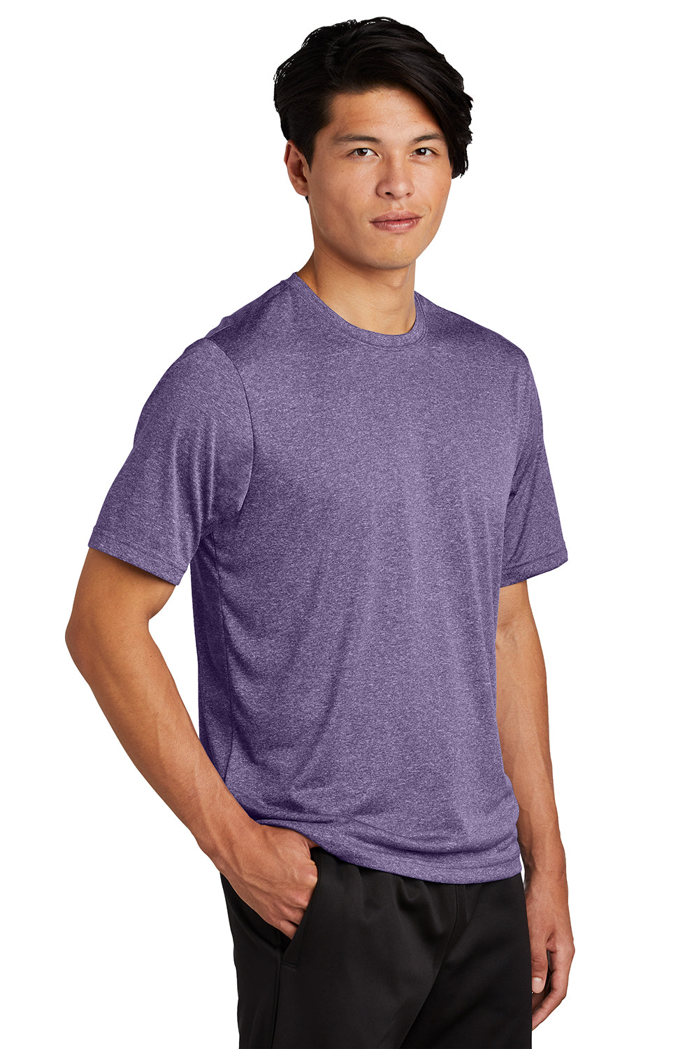 Sport-Tek Mens Contender Heather Moisture Wicking Short Sleeve Crewneck T-Shirt - Heather Purple