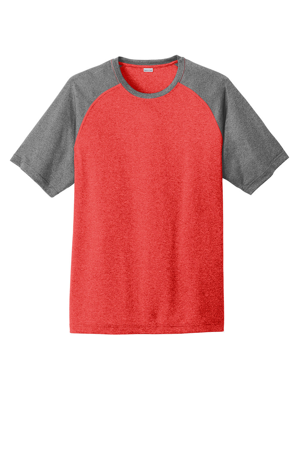 Sport-Tek Mens Contender Heather Moisture Wicking Short Sleeve Crewneck T-Shirt - Heather Scarlet Red/Heather Graphite Grey - Closeout