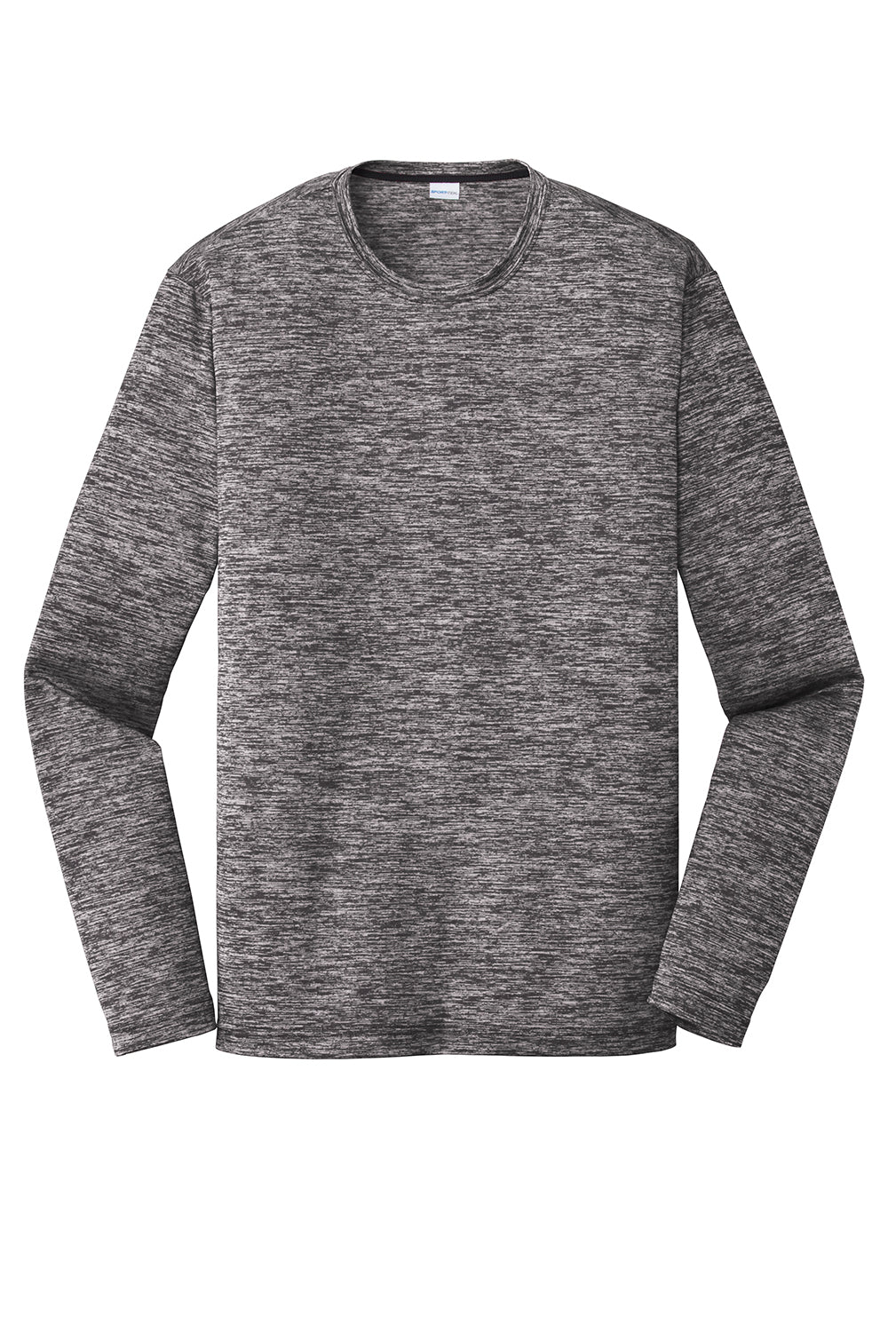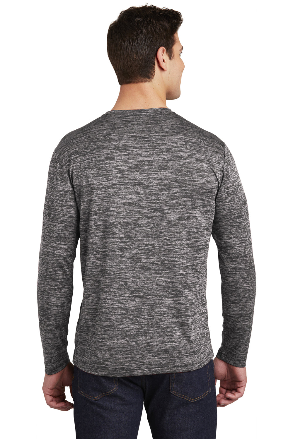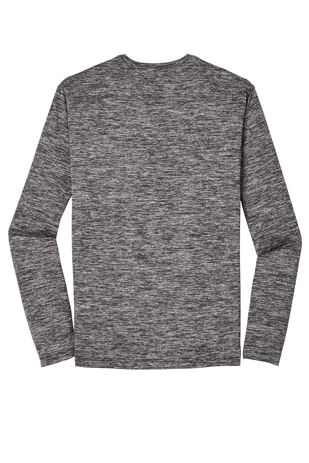 Sport-Tek Mens Electric Heather Moisture Wicking Long Sleeve Crewneck T-Shirt - Black Electric