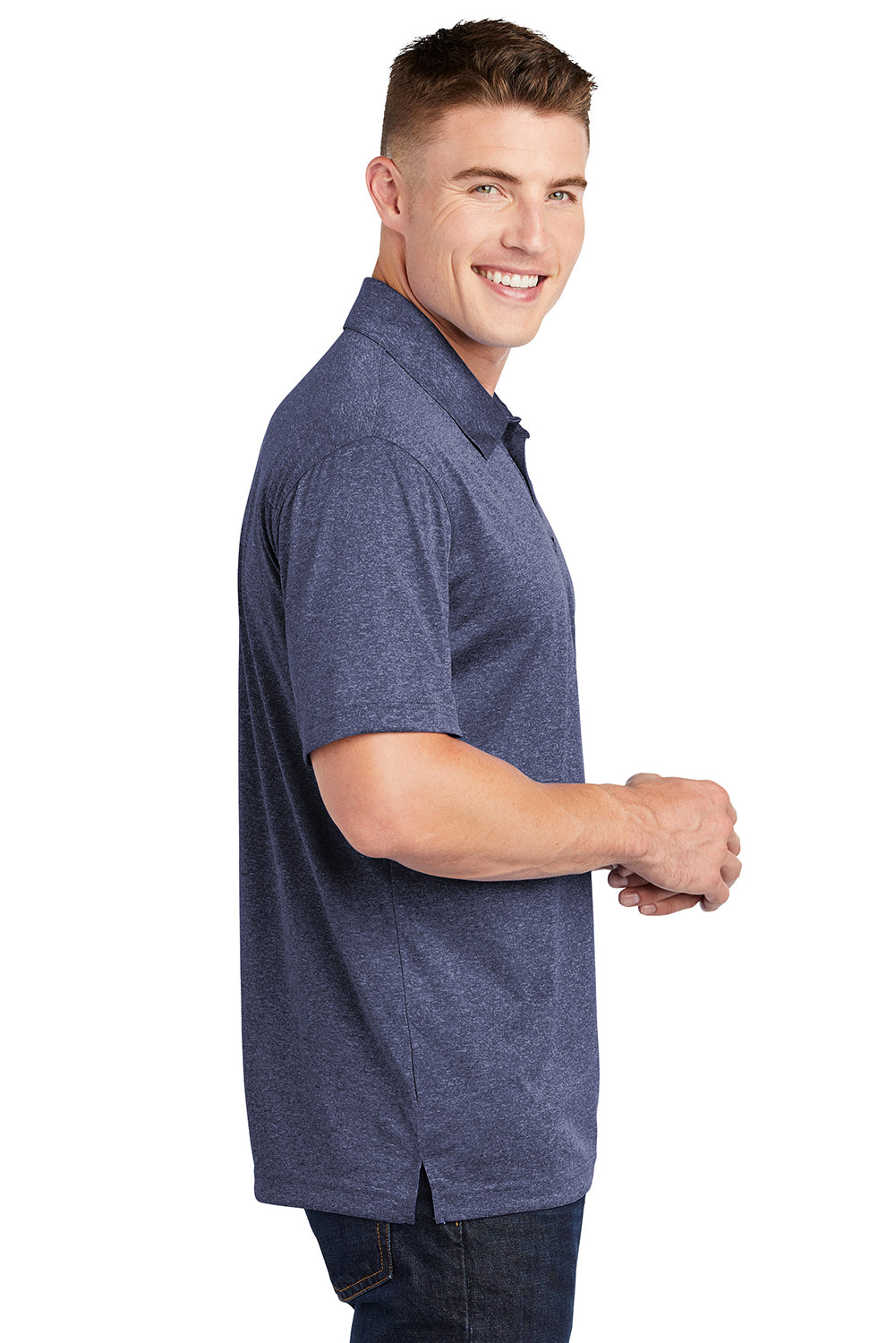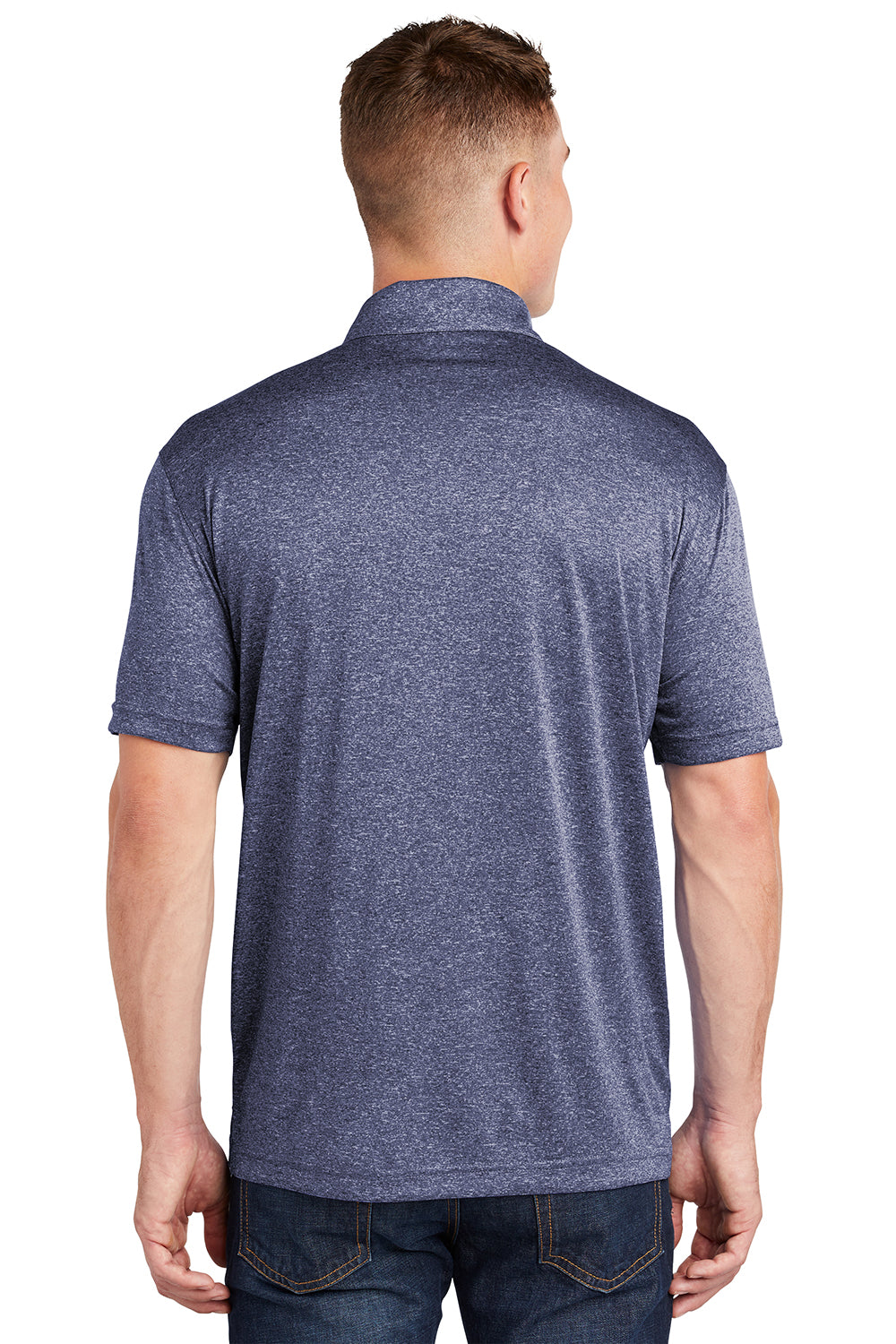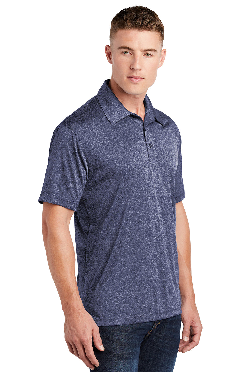 Sport-Tek Mens Heather Contender Moisture Wicking Short Sleeve Polo Shirt - Heather True Navy Blue