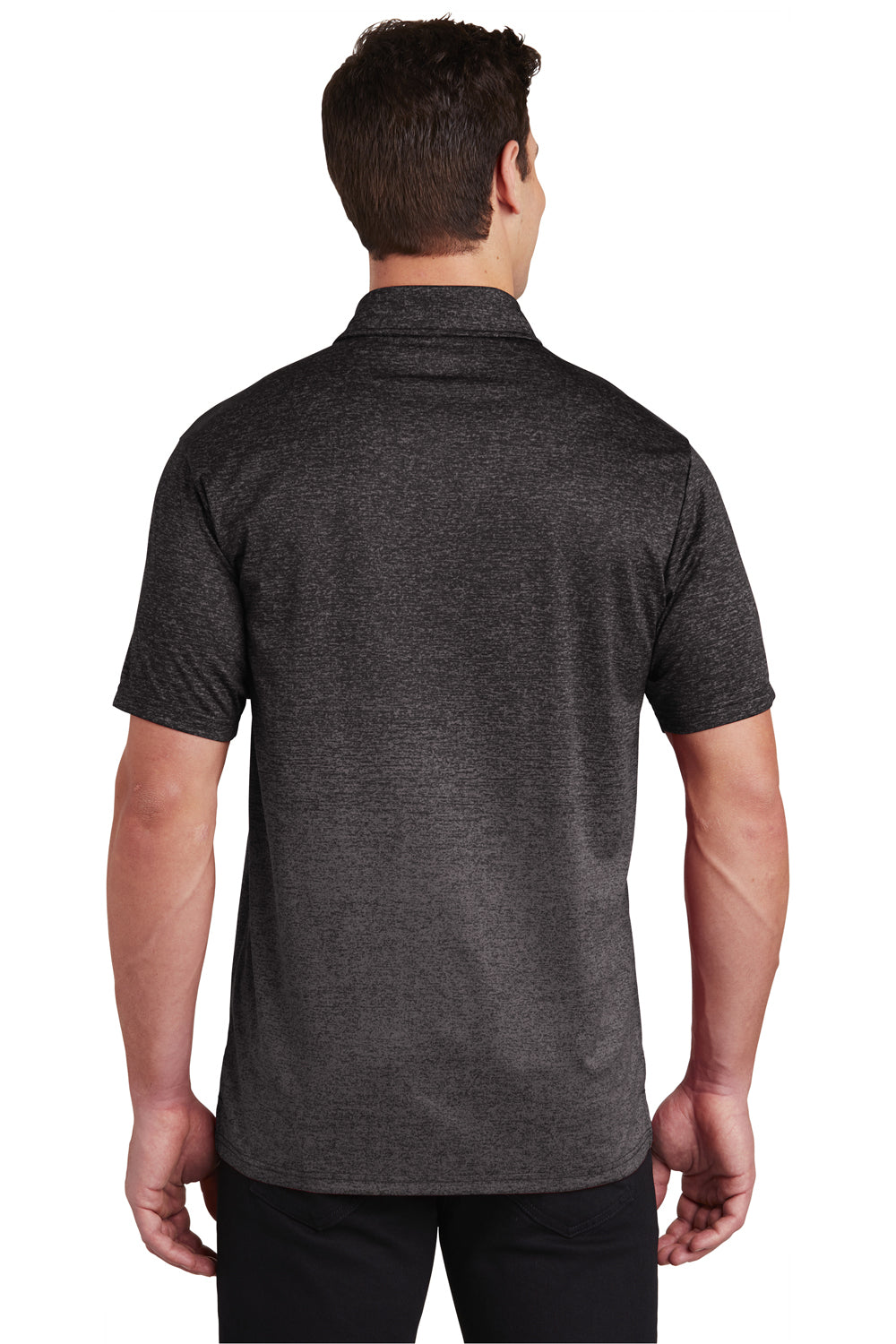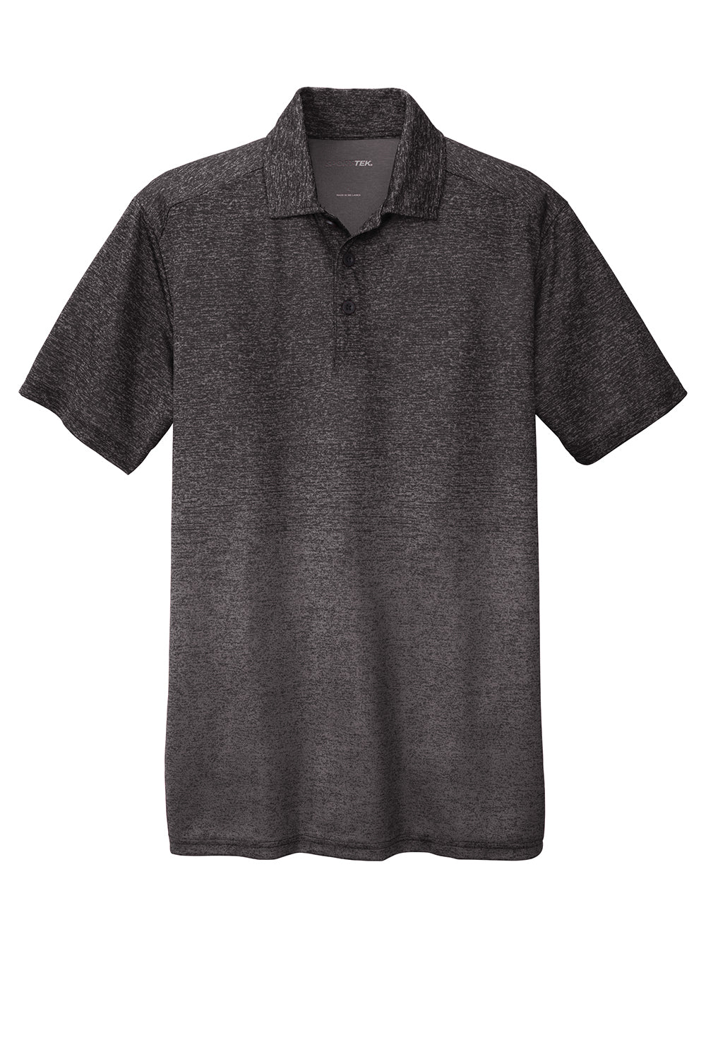 Sport-Tek Mens Ombre Heather Moisture Wicking Short Sleeve Polo Shirt - Iron Grey/Black