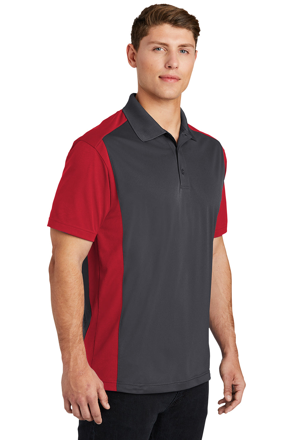 Sport-Tek Mens Sport-Wick Moisture Wicking Short Sleeve Polo Shirt - Iron Grey/True Red