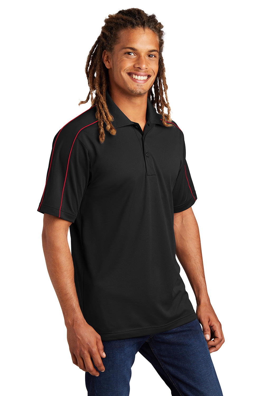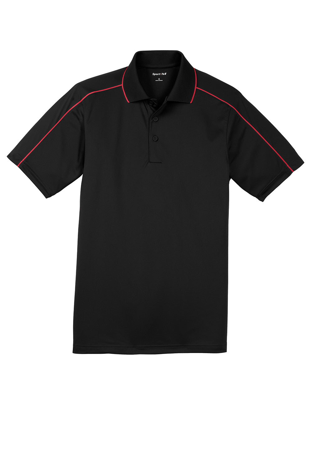 Sport-Tek Mens Sport-Wick Moisture Wicking Short Sleeve Polo Shirt - Black/True Red