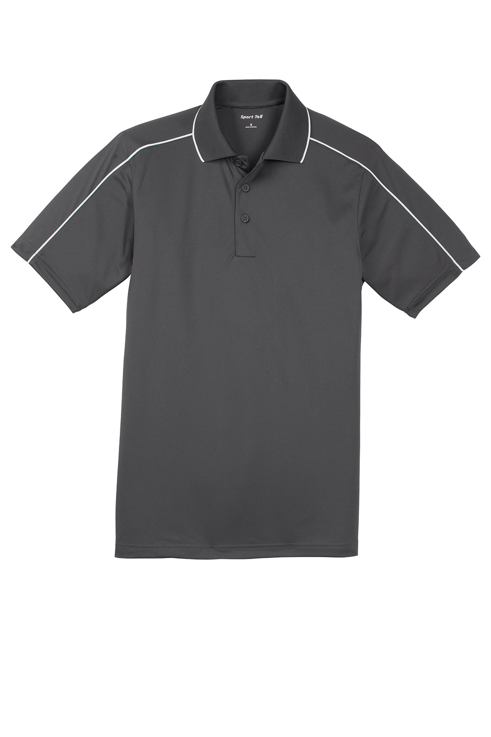 Sport-Tek Mens Sport-Wick Moisture Wicking Short Sleeve Polo Shirt - Iron Grey/White