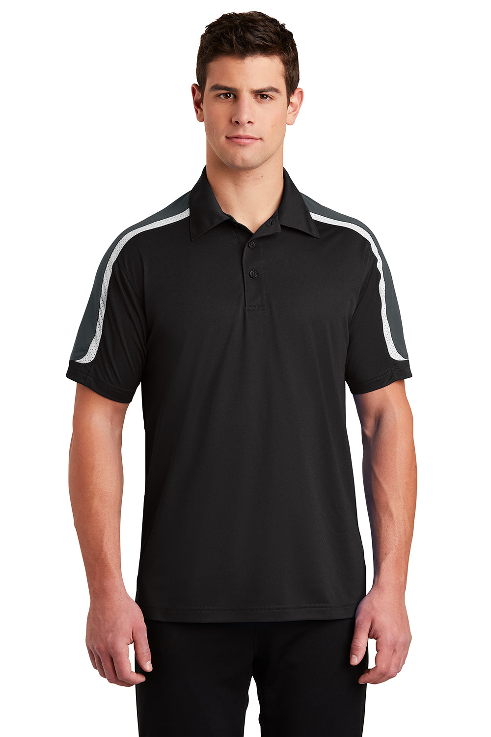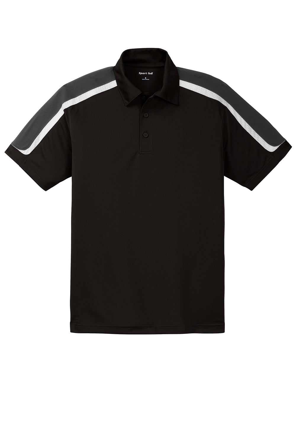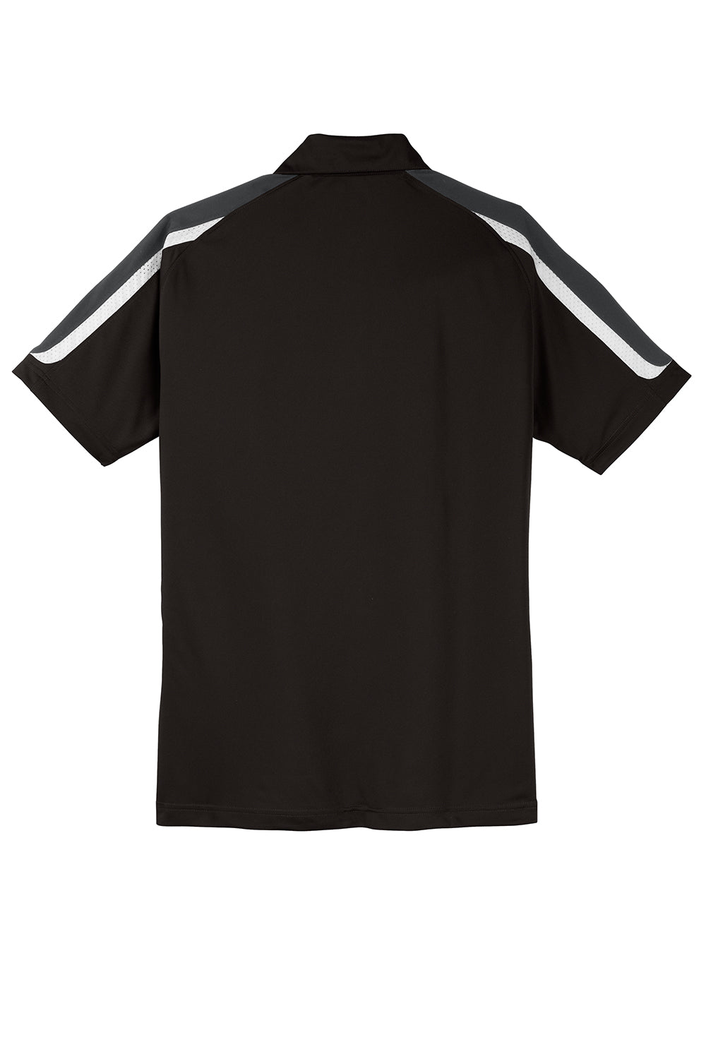 Sport-Tek Mens Sport-Wick Moisture Wicking Short Sleeve Polo Shirt - Black/Iron Grey/White