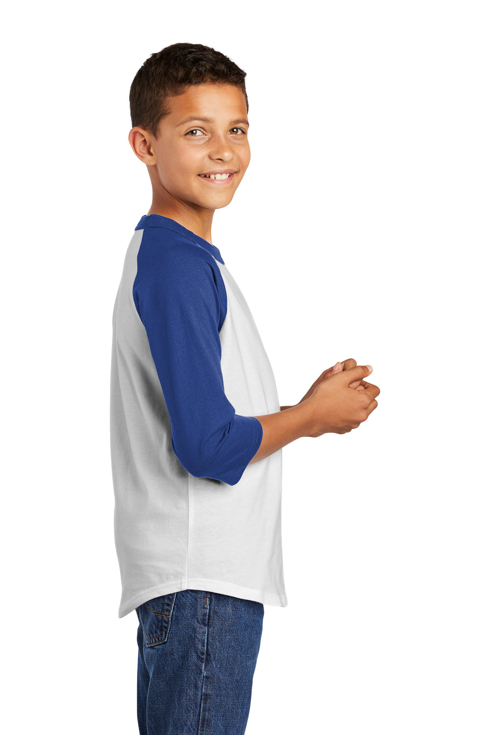 Sport-Tek Youth 3/4 Sleeve Crewneck T-Shirt - White/Royal Blue