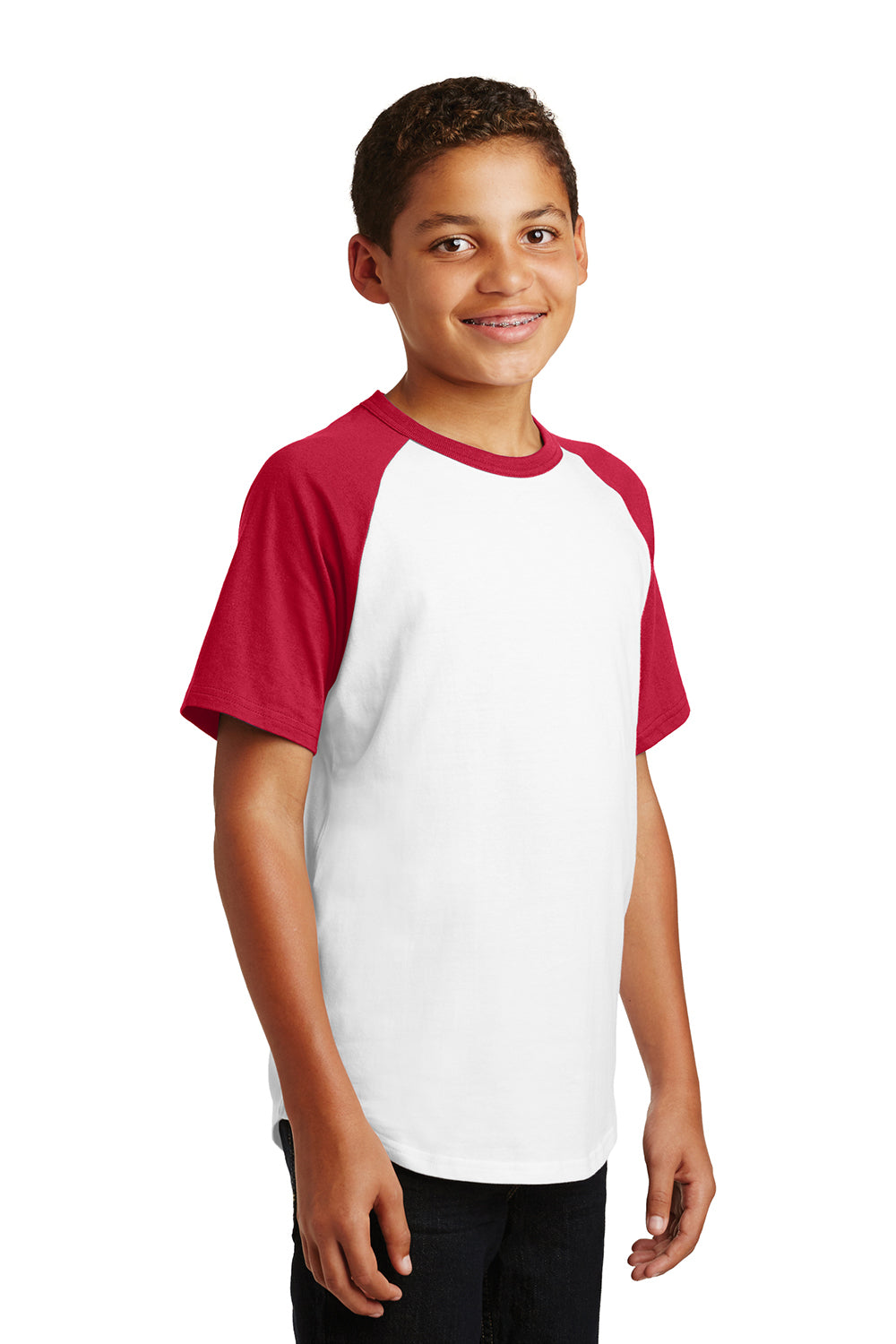 Sport-Tek Youth Short Sleeve Crewneck T-Shirt - White/Red
